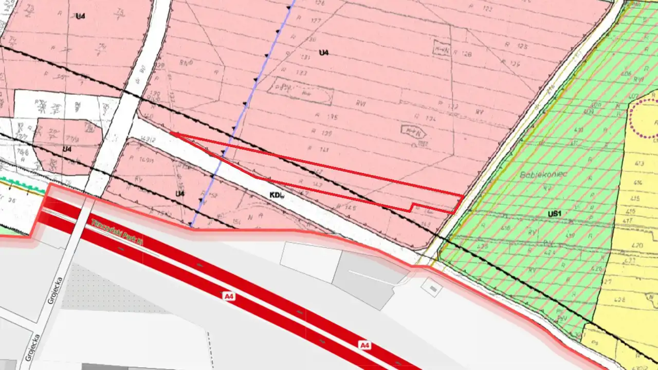 Działka komercyjna o powierzchni 8700 m² położona w miejscowości Rudno, gmina Krzeszowice. Teren w miejscowym planie zagospodarowania przestrzennego oznaczony jest symbolem U4, przewidzianym pod zabudowę usługową. Nieruchomość posiada bezpośrednie połączenie z autostradą A4 Kraków–Katowice i znajduje się około 1000 metrów od węzła prowadzącego do parku rozrywki Alvernia Planet.