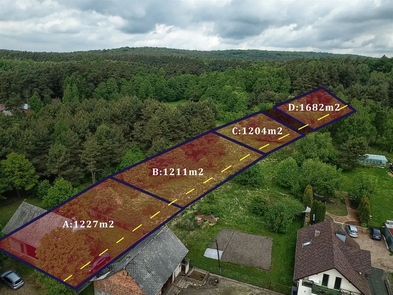 Działka B - powierzchnia 1211m2, cena 180 tyś zł,