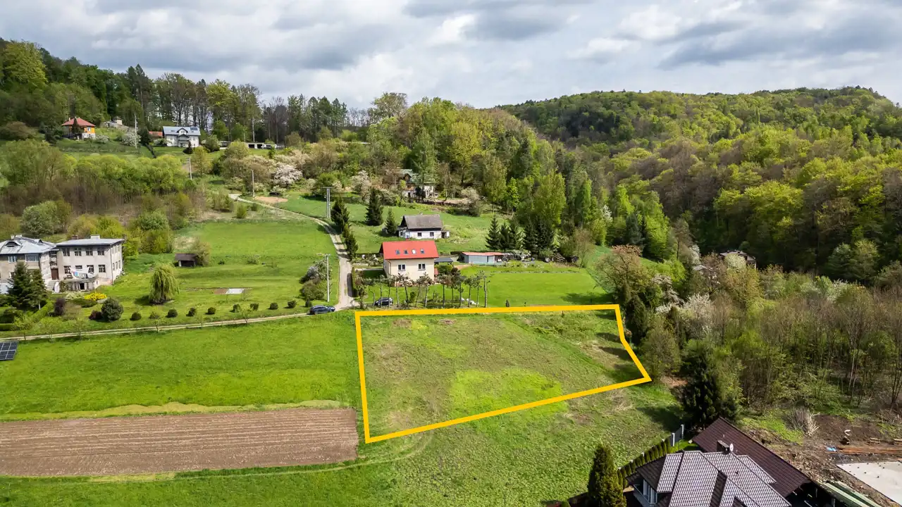 - Działka Niezagospodarowana, lekko nachylona, prostokąt