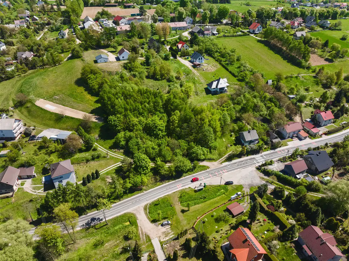 Działka położona w wyjątkowym, malowniczym miejscu, otoczona licznymi drzewami, z naturalnym wąwozem i pofałdowanym terenem. Dzięki unikalnemu ukształtowaniu istnieje możliwość stworzenia niepowtarzalnego ogrodu oraz wybudowania domu z zachwycającym widokiem.