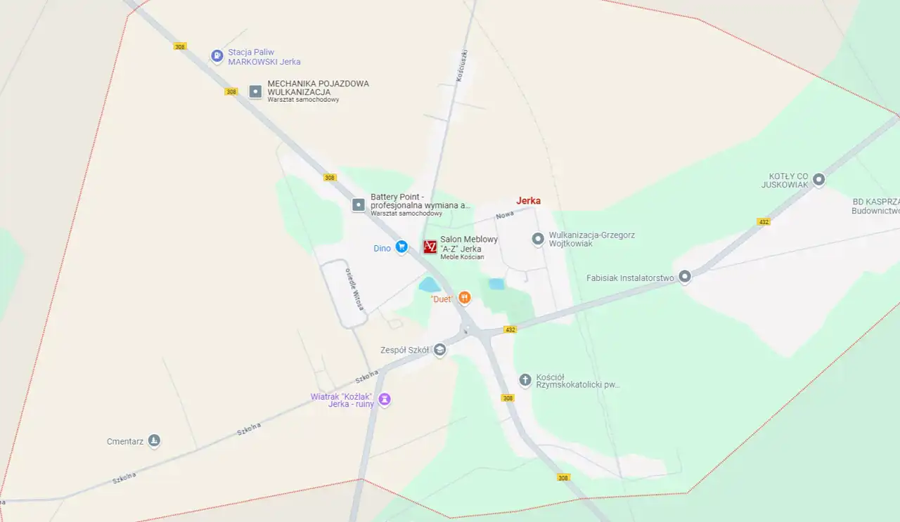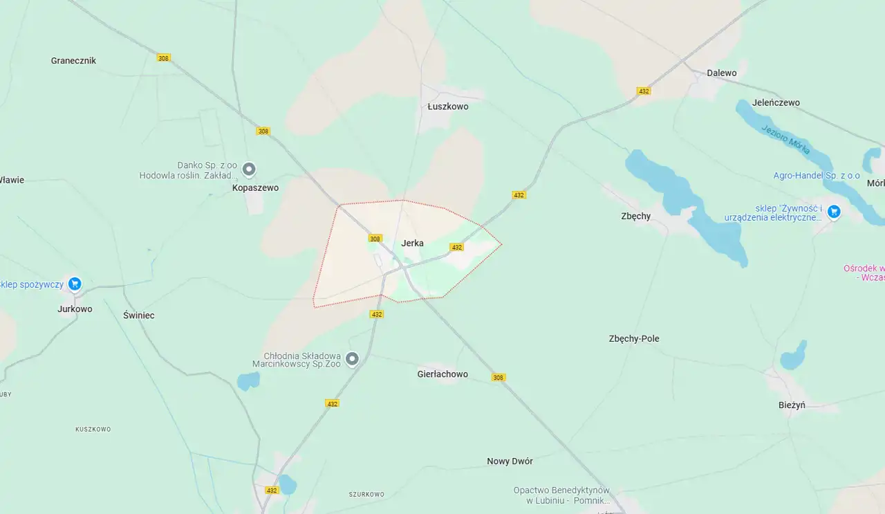 Działka znajduje się w miejscowości Jerka, gmina Krzywiń, w powiecie kościańskim, województwo wielkopolskie. Lokalizacja ta charakteryzuje się spokojem oraz bliskością natury, a jednocześnie dobrym połączeniem z większymi miastami.