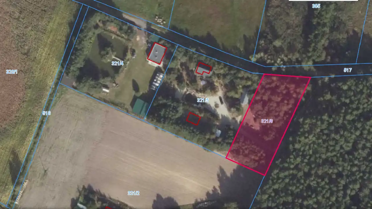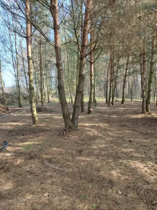 - Działka Niezagospodarowana, częściowo zalesiona, nieregularny