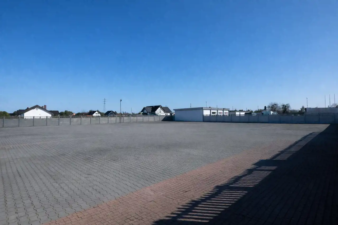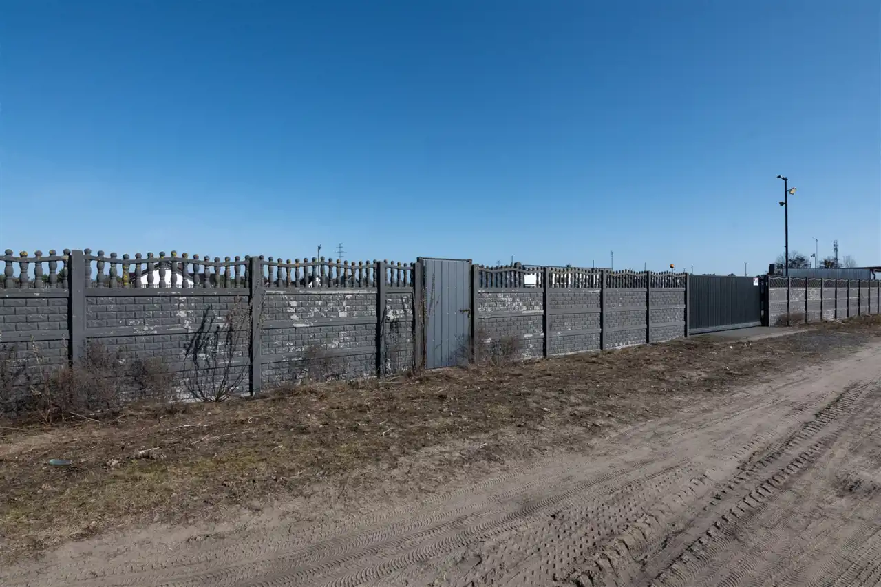 Teren jest utwardzony kostką brukową oraz ogrodzony płotem betonowym, co znacząco zwiększa jego funkcjonalność i obniża koszty startowe inwestycji.