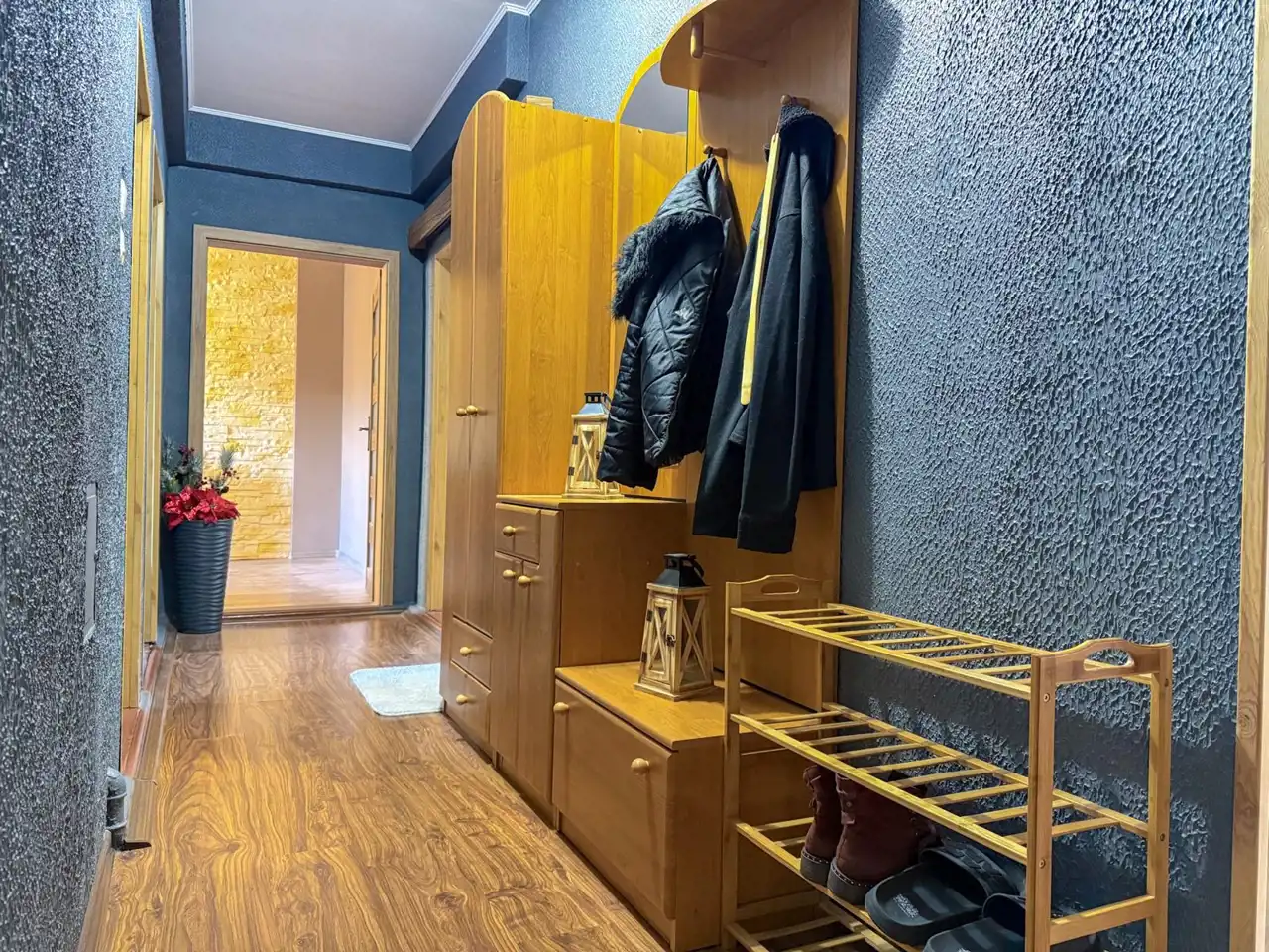 - Korytarz – 8,60 m² – z miejscem na szafę i wygodne wejście do każdego z pomieszczeń.