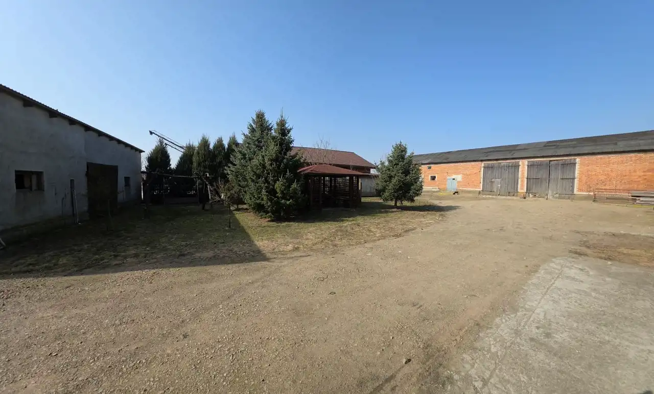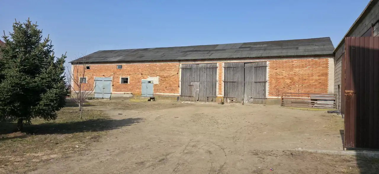 Murowane budynki gospodarcze o łącznej powierzchni 750 mkw., wyposażone w wodę i prąd trójfazowy.
