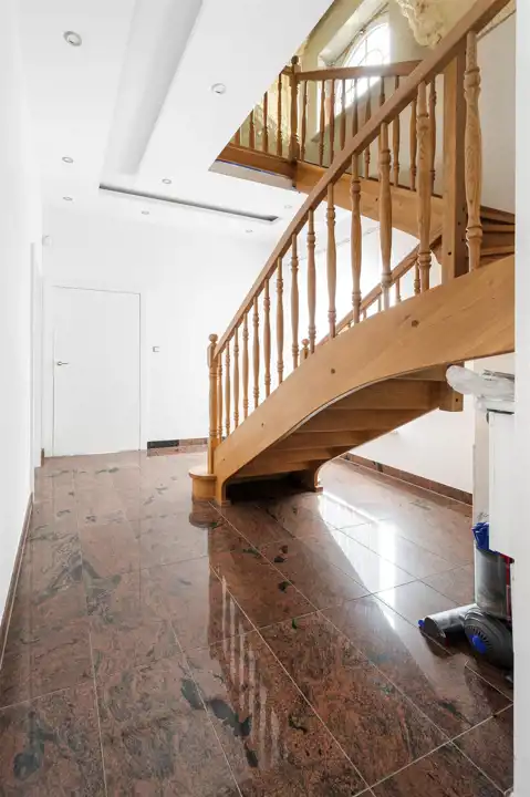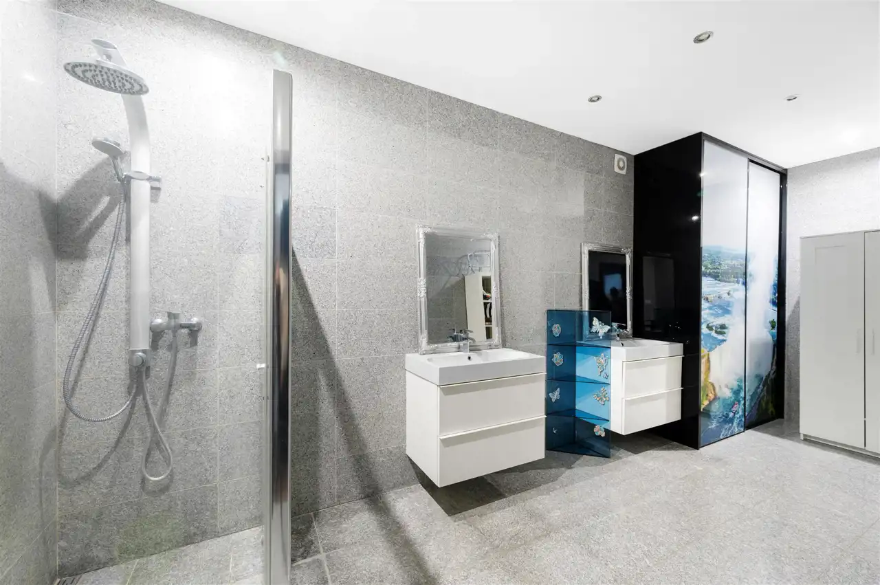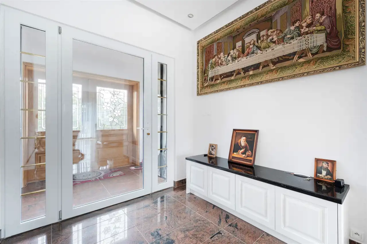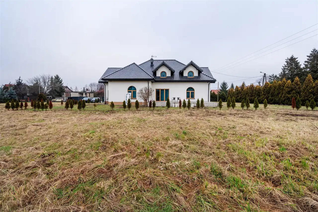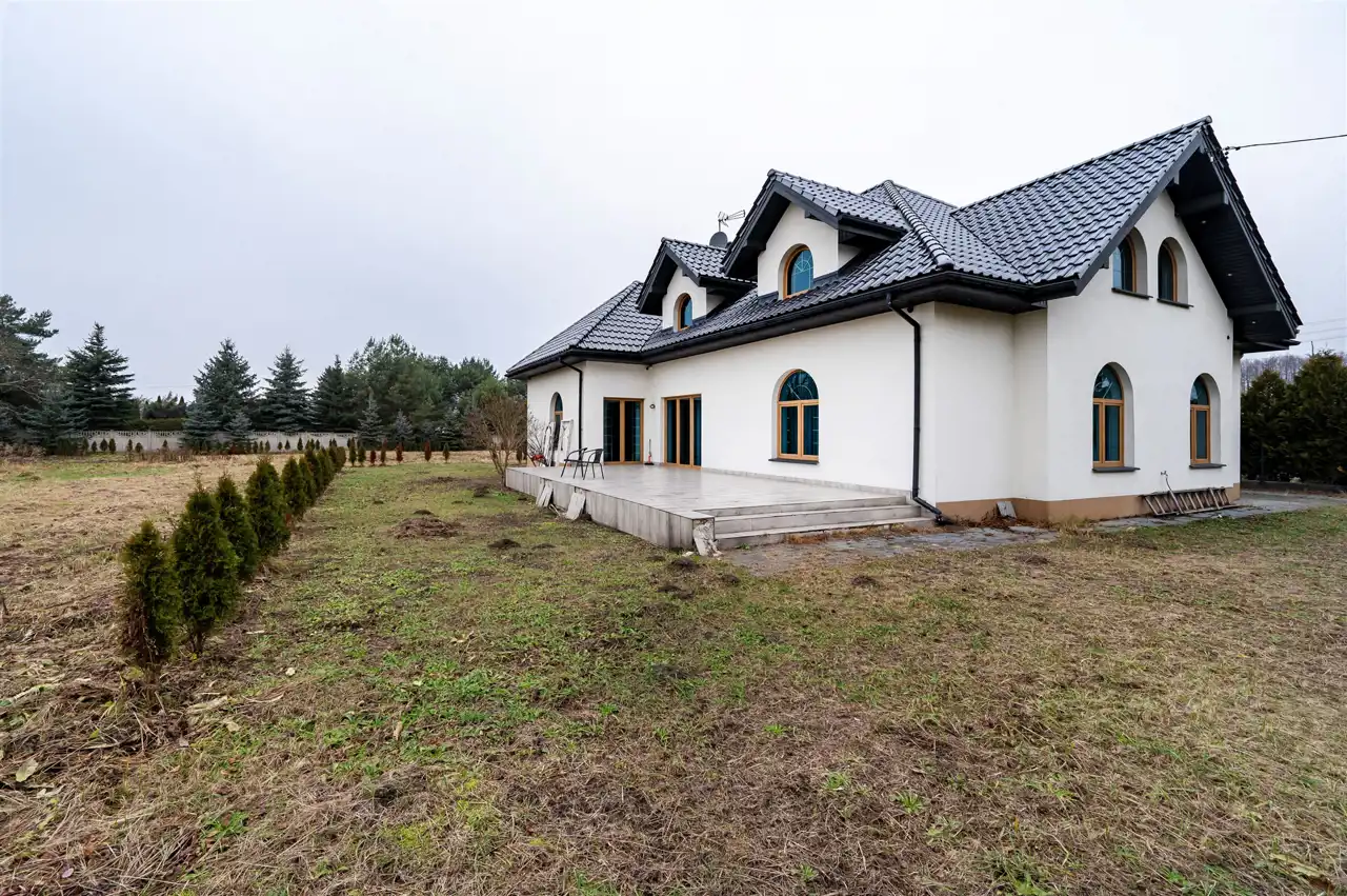 Część domu prezentowana na zdjęciach jest w pełni wykończona w wysokim standardzie, natomiast piętro pozostaje do wykończenia według własnej aranżacji, co daje nowemu właścicielowi możliwość stworzenia przestrzeni idealnie dopasowanej do indywidualnych potrzeb i stylu