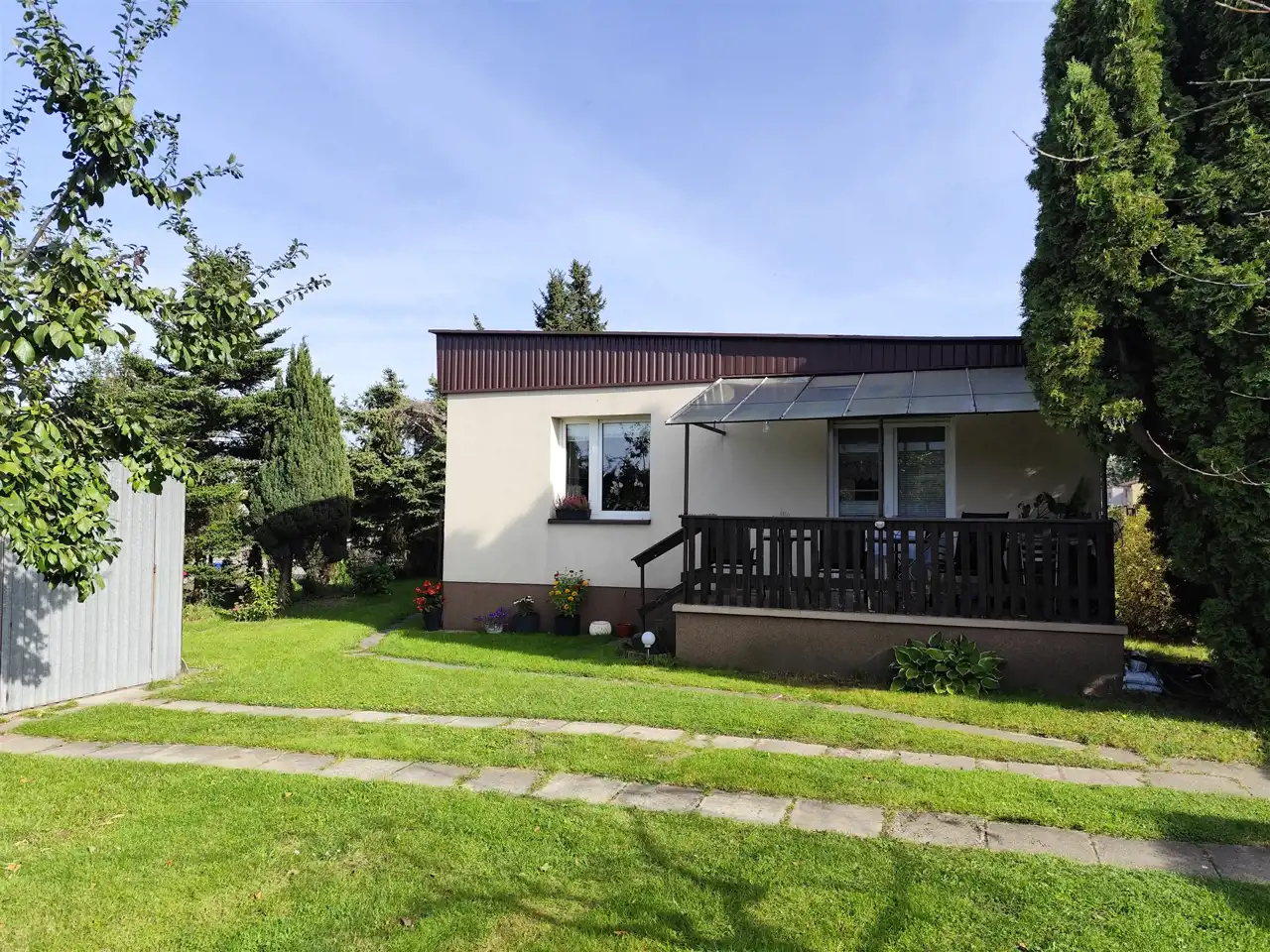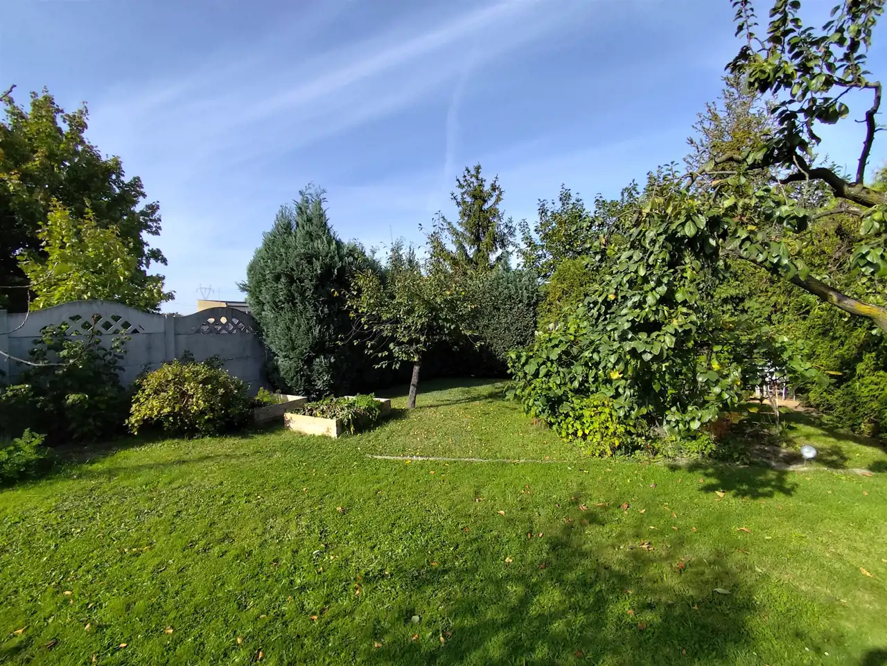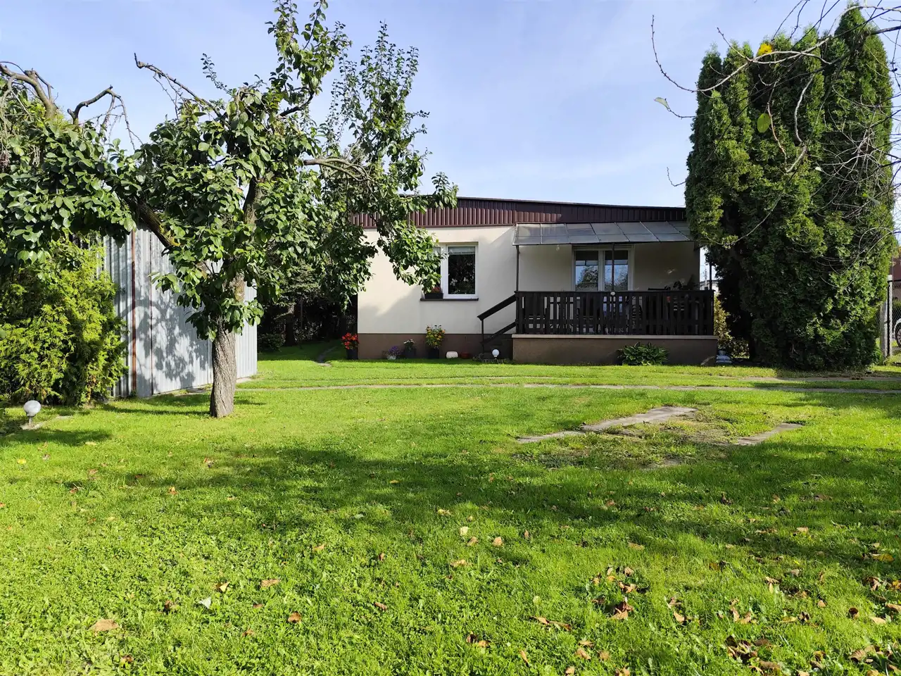 Ładna, zadbana działka z nasadzeniami i przestrzenią do wypoczynku.
