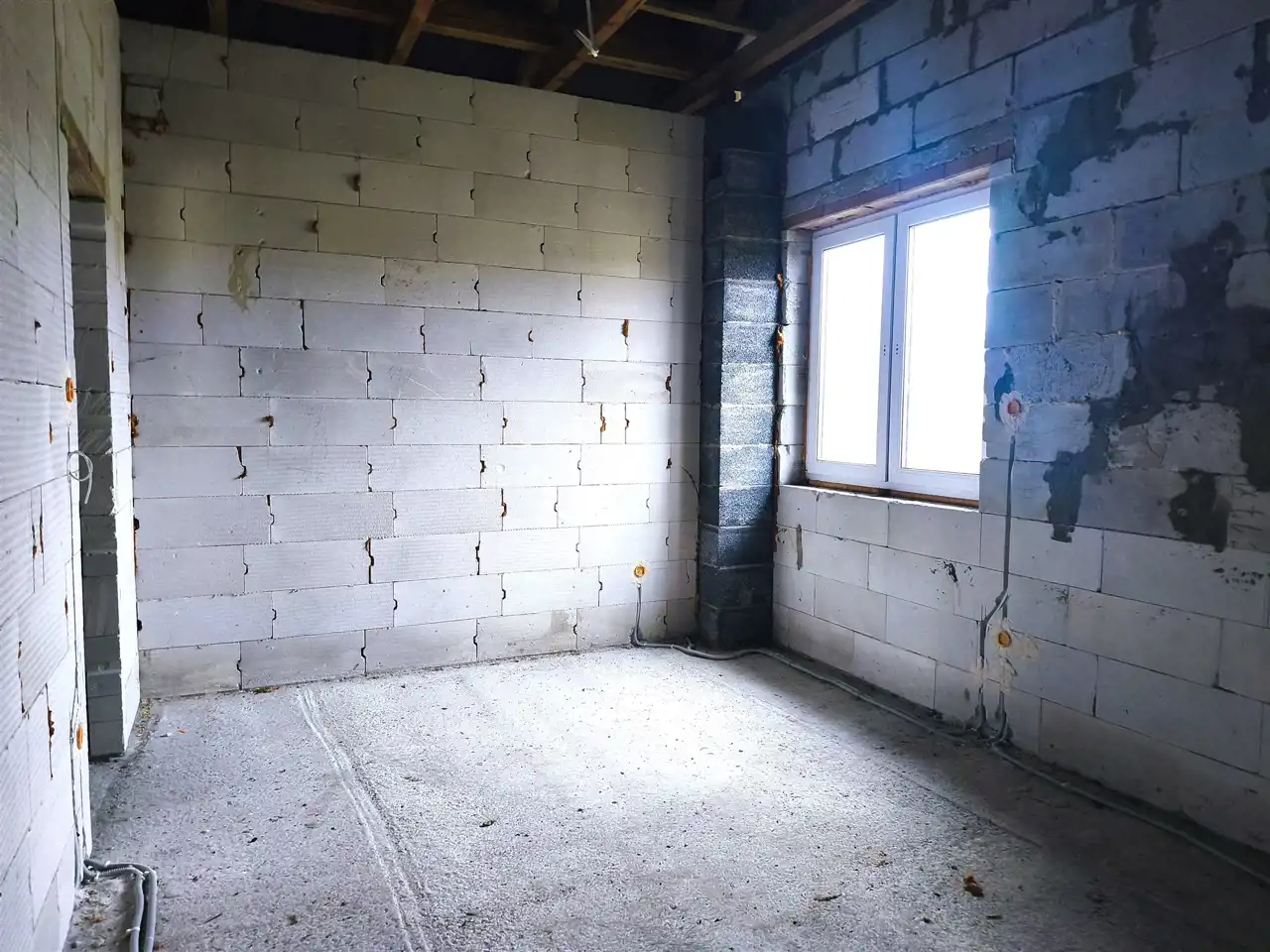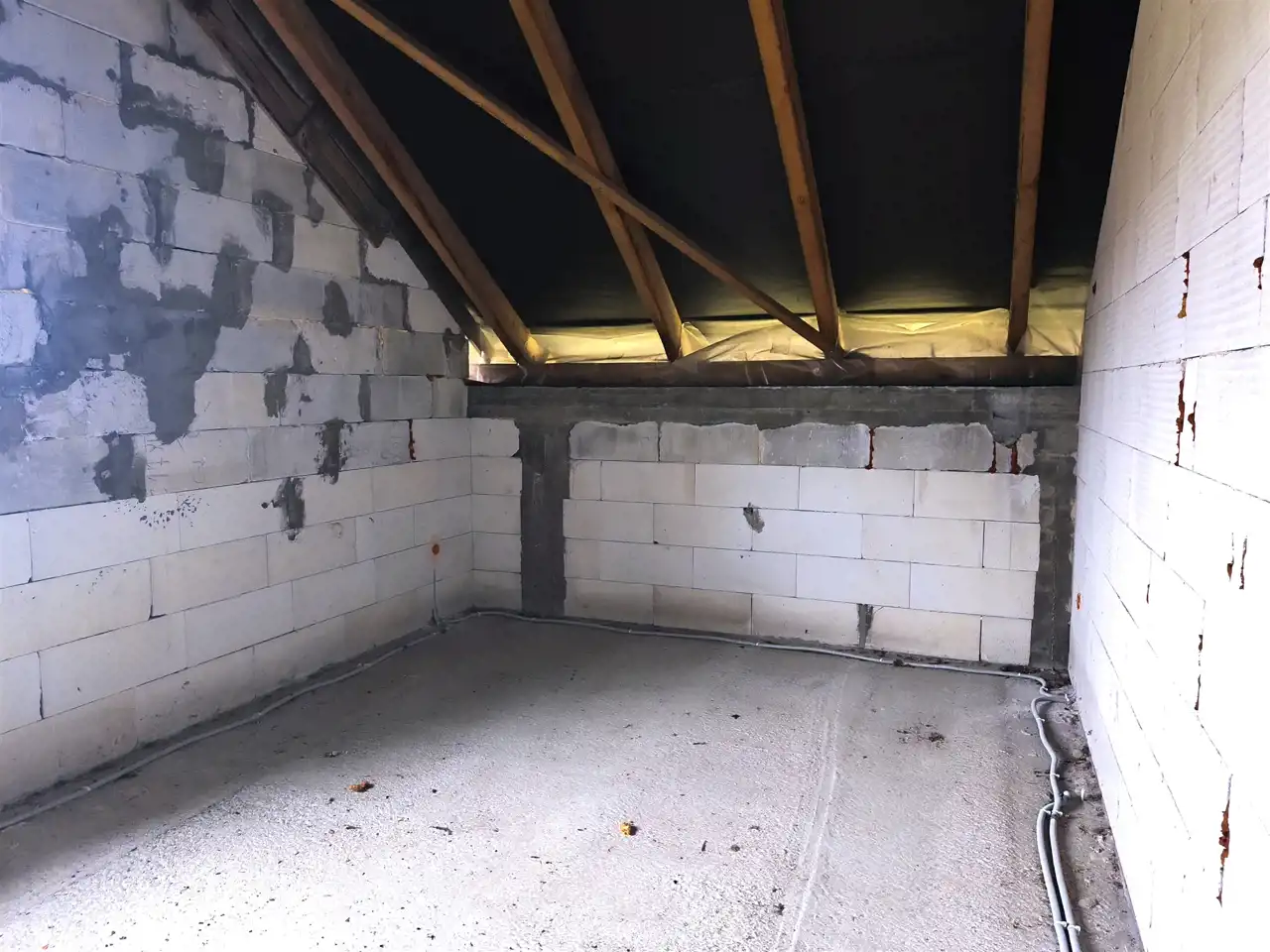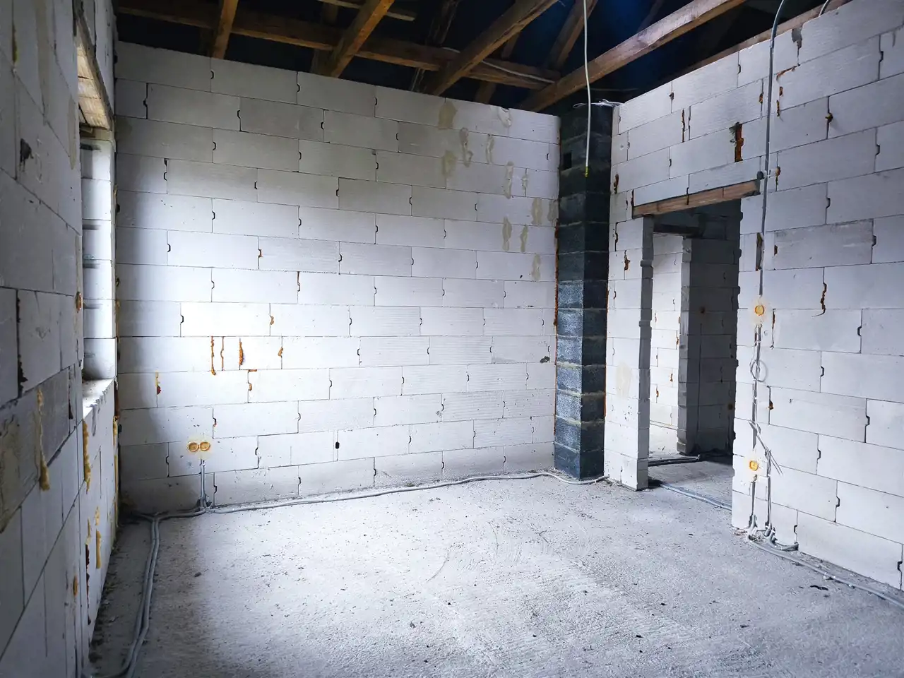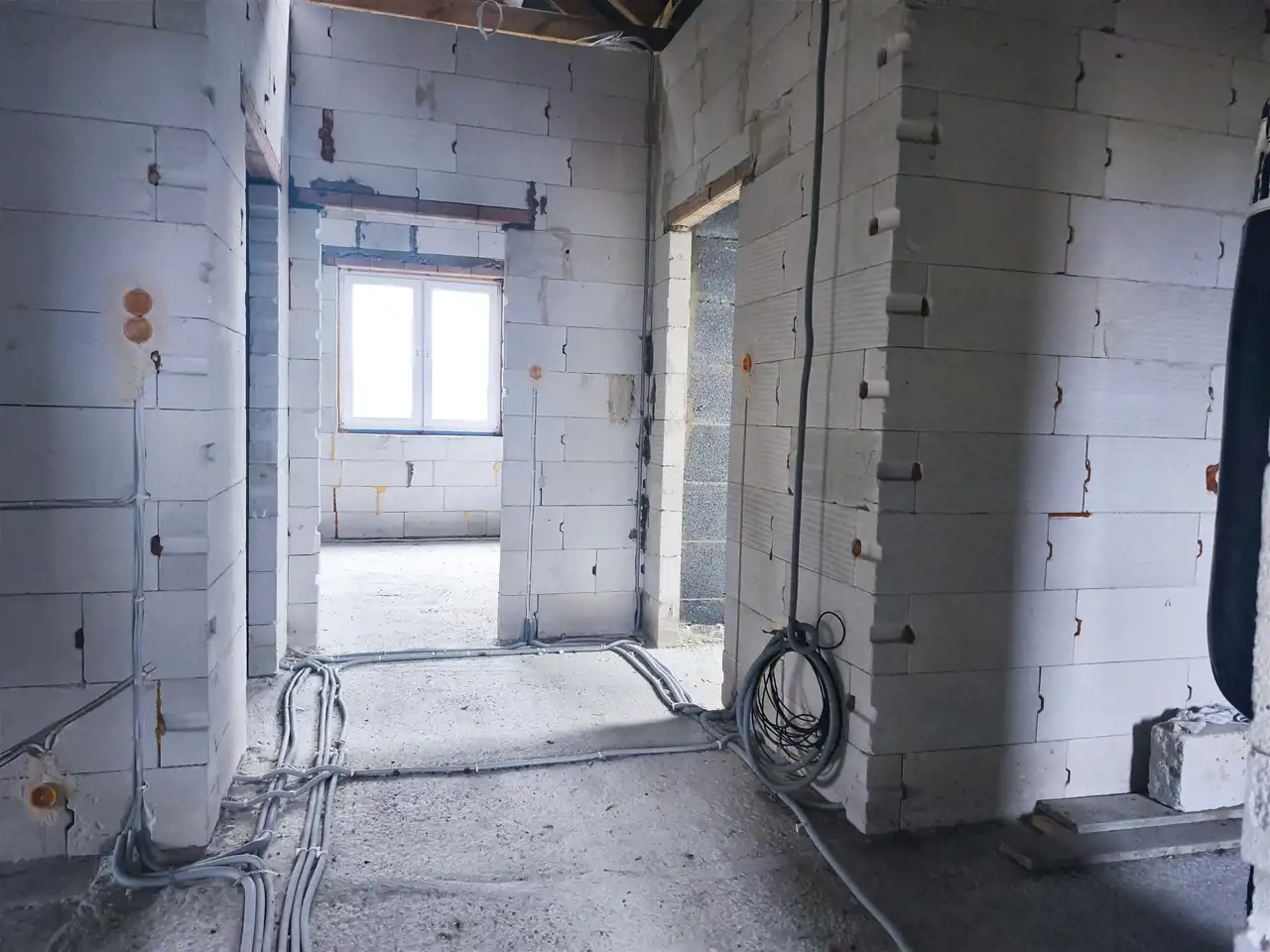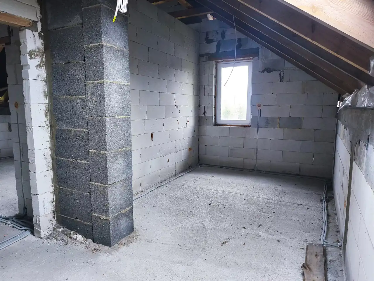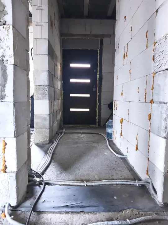 wewnątrz wykonana instalacja elektryczna oraz rozciągnięta kanalizacja,