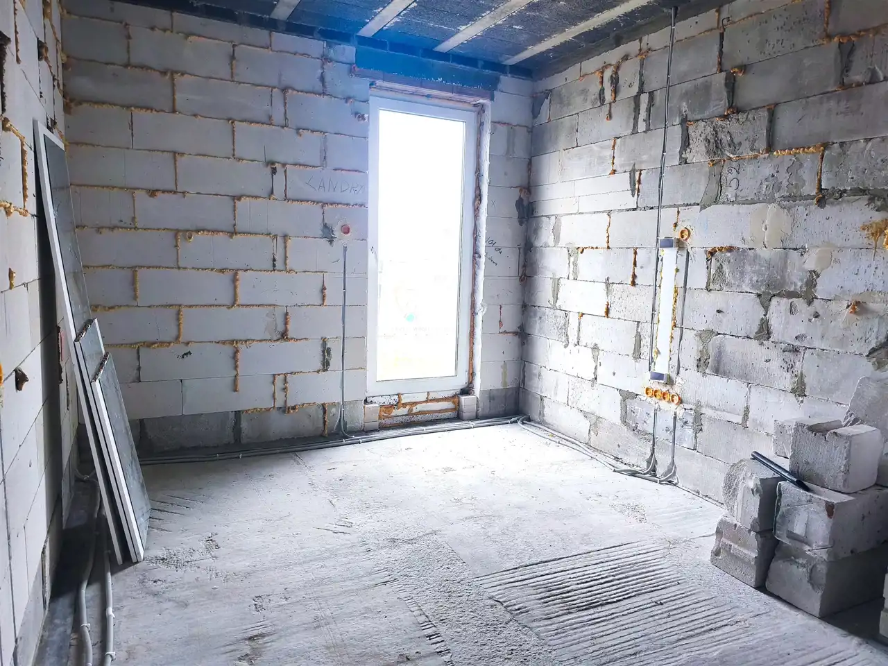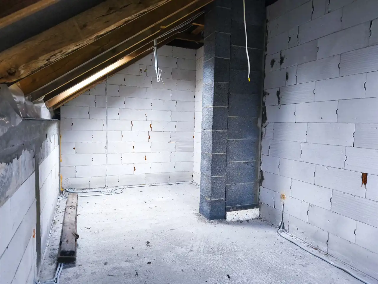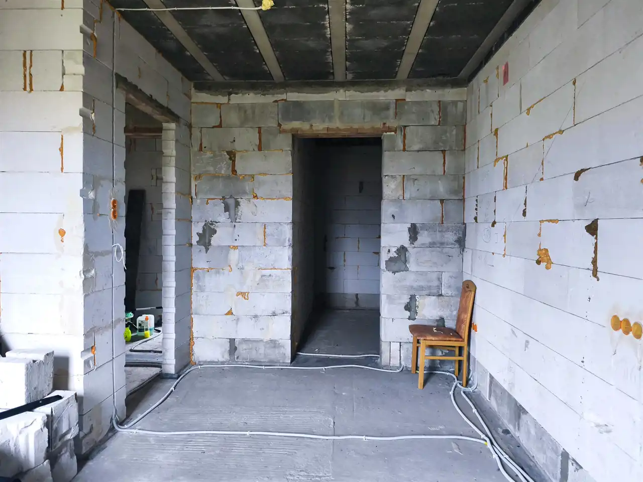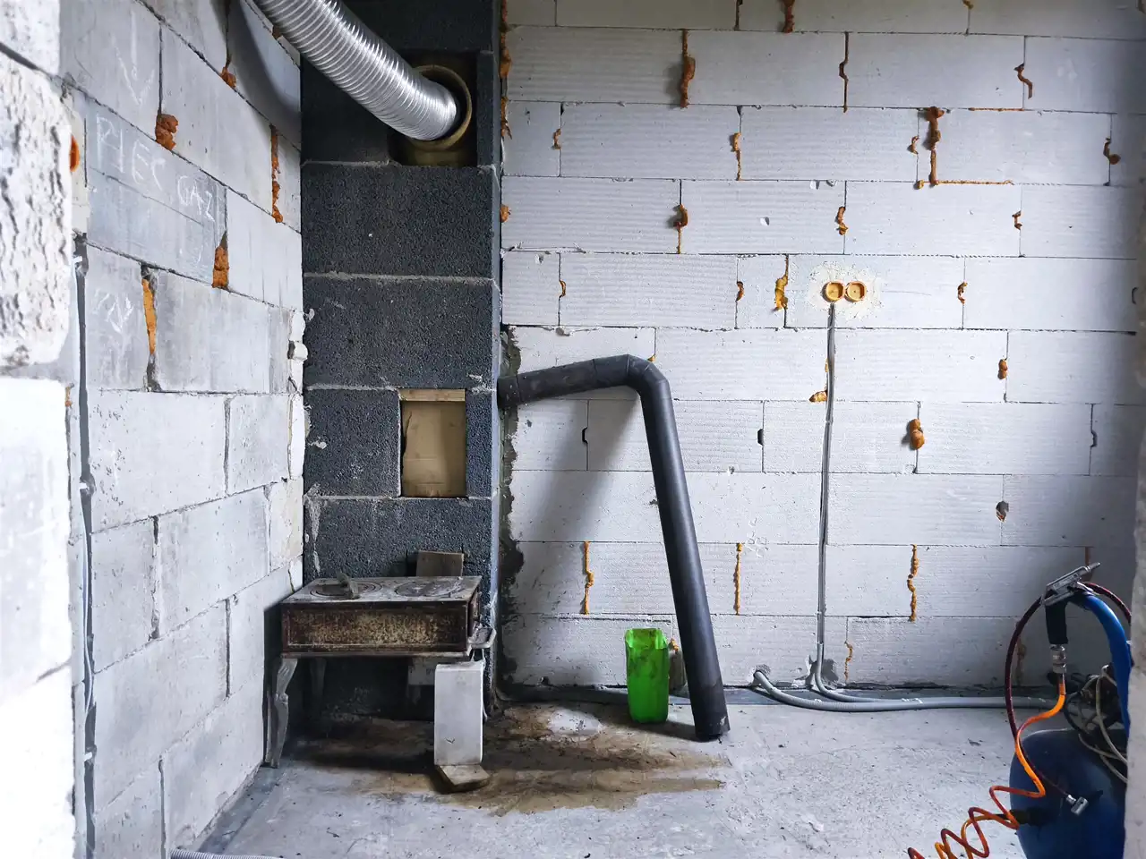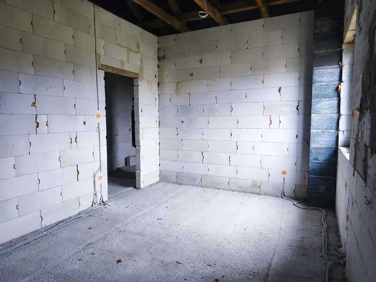 wewnątrz wykonana instalacja elektryczna oraz rozciągnięta kanalizacja,