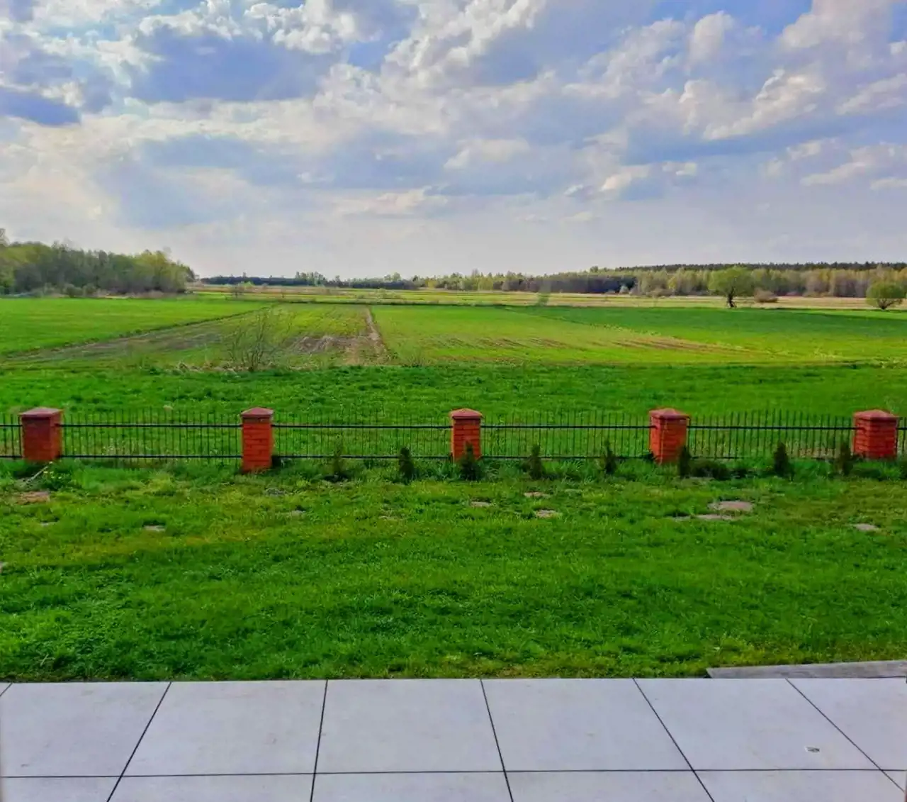 Nieruchomość położona jest w bardzo przyjemnej lokalizacji: dojazd do nieruchomości jest drogą asfaltową z chodnikami, pobliżu liczne trasy rowerowe, działka jest ogrodzona z pięknym widokiem z tarasu na zachód słońca, pola i las (bez zabudowy sąsiedztwa).