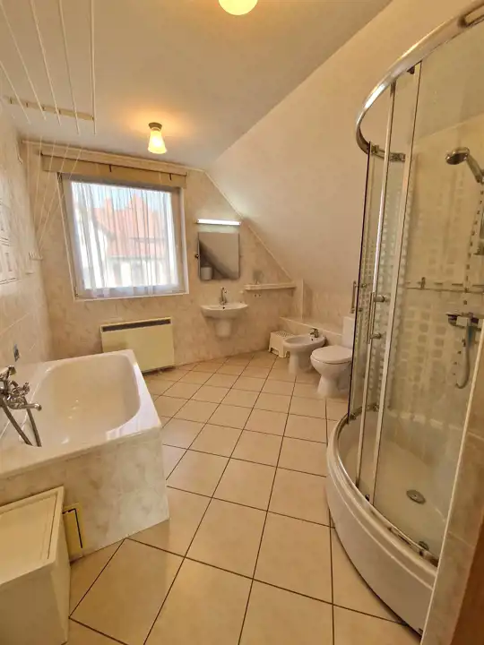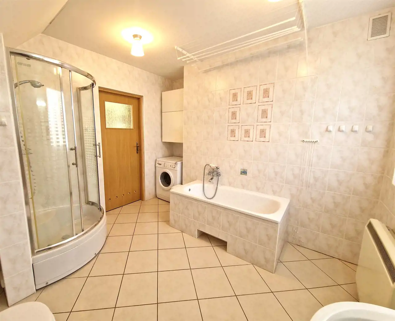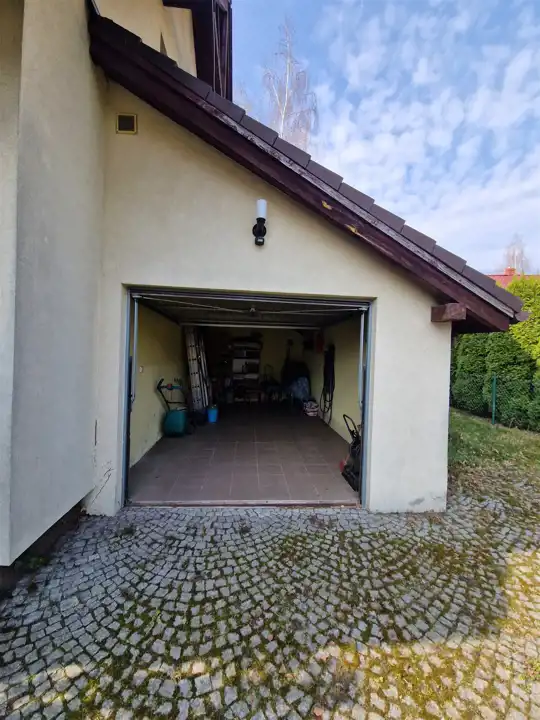 - Okna: PCV podwójne, od strony ogrodu rolety antywłamaniowe i pancerne szyby