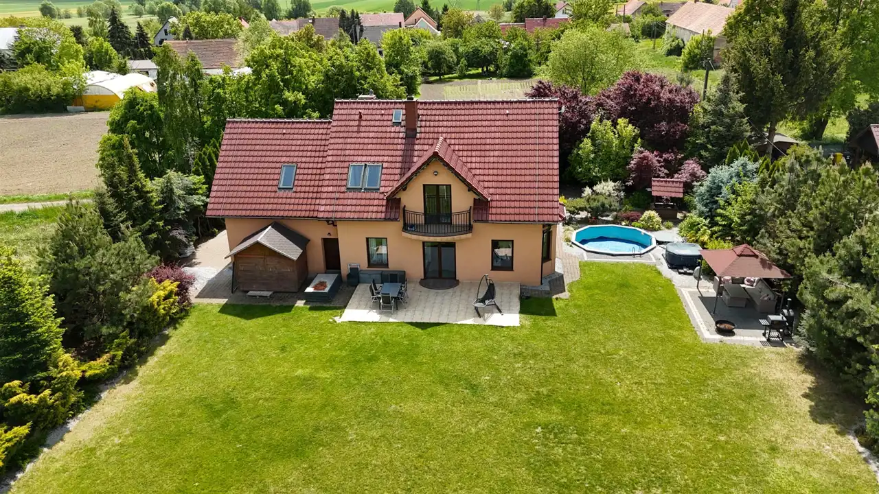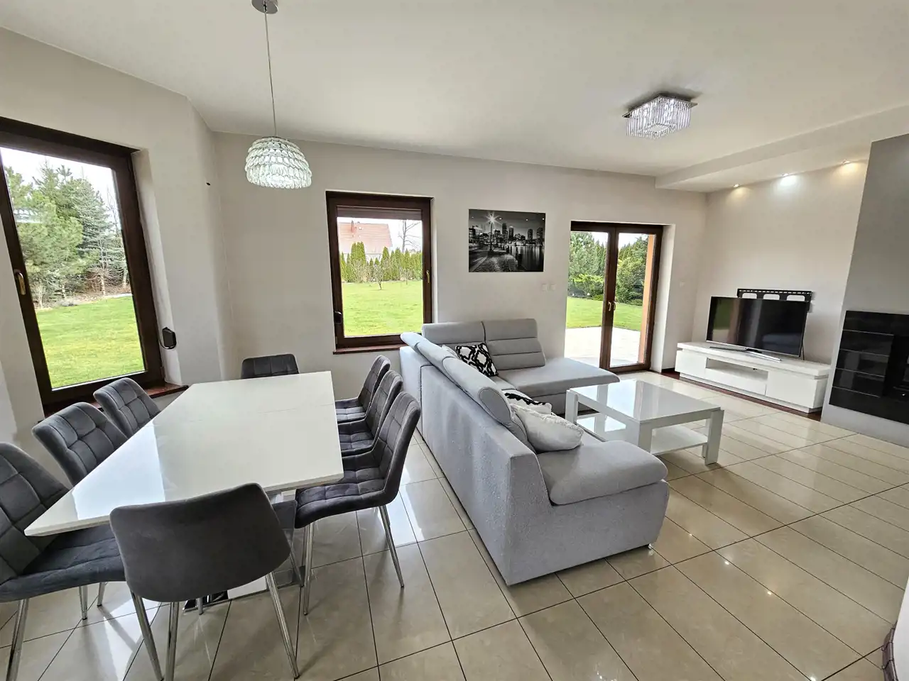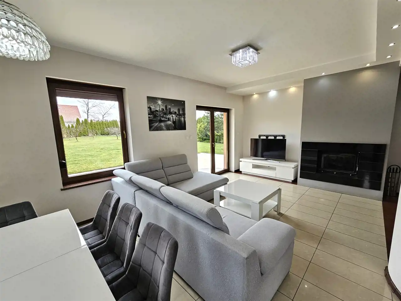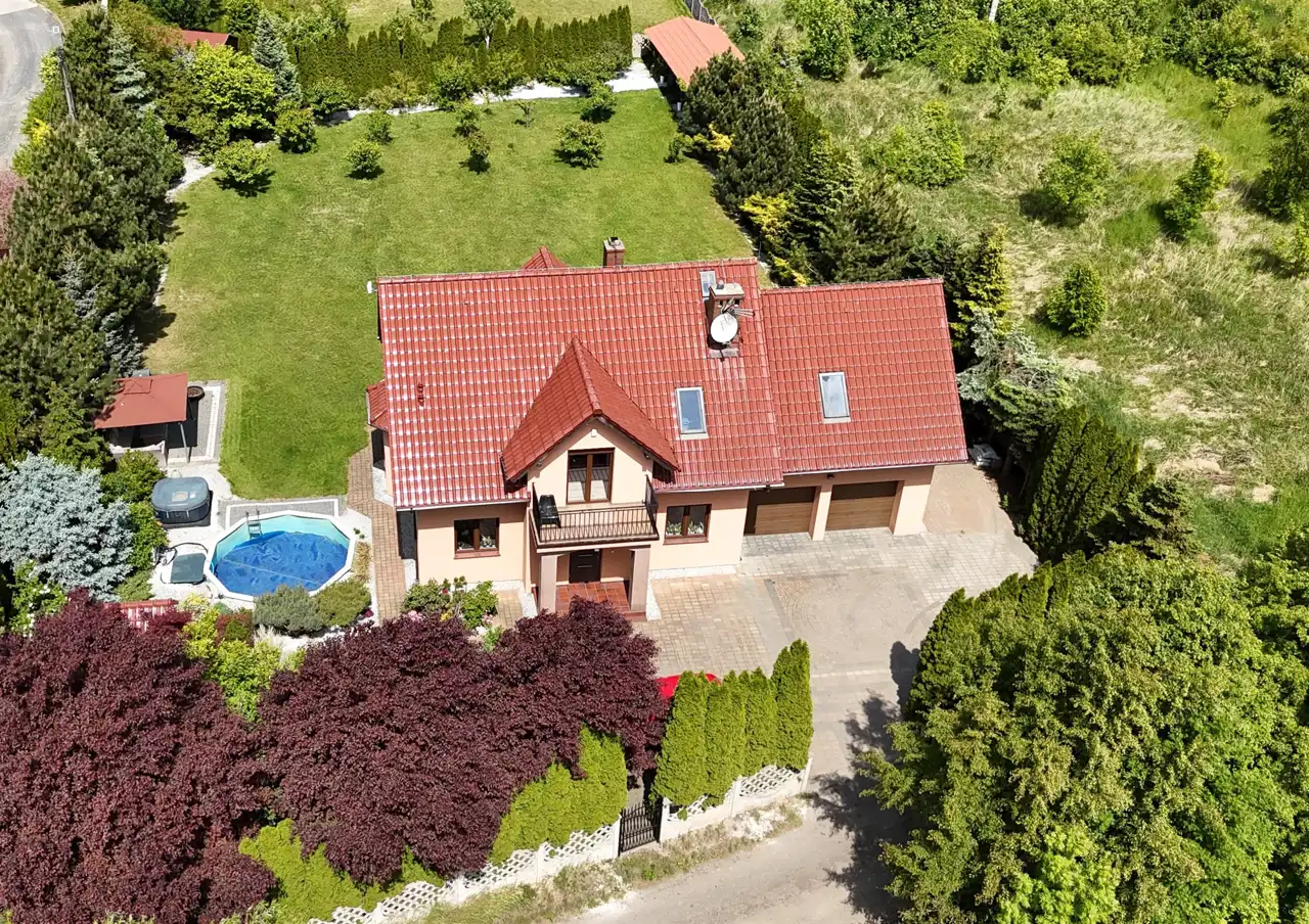 Projekt domu gwarantuje komfortowe i wygodne życie jego mieszkańcom. Dom oraz ogród jest bardzo zadbany i na co dzień utrzymywany w nienagannym stanie technicznym i wizualnym. Otoczenie sprzyja oderwaniu się od miejskiego zgiełku, co pozwala na pełne korzystanie z uroków przyrody. Posiadłość jest idealna dla osób wymagających, ceniących ciszę, spokój i kontakt z naturą, a także wygodę i elegancję. Dom o powierzchni użytkowej ok. 210m2, posiada również dwustanowiskowy garaż.