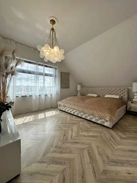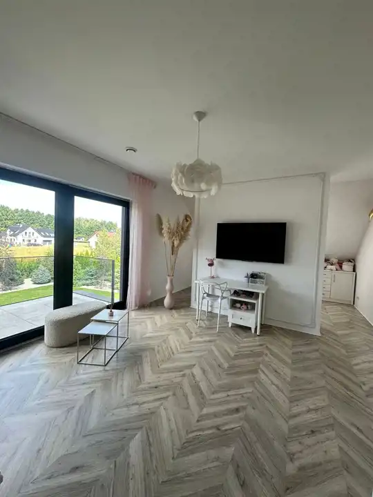 Wnętrze domu zachwyca gustownie dobranym wyposażeniem i dodatkami, na każdym kroku „czuć” ład i harmonię. Jednolite podłogi, świetnie zaaranżowana kuchnia, łazienki i pomieszczenia powodują, że mieszka się wygodnie i komfortowo. Dodatkowo duży taras, jacuzzi, otoczenie zieleni, mikroklimat sprawiają, że jest to prawdziwa strefa spokoju i relaksu. Dla dzieci jest wyznaczony teren do beztroskiej zabawy na świeżym powietrzu.