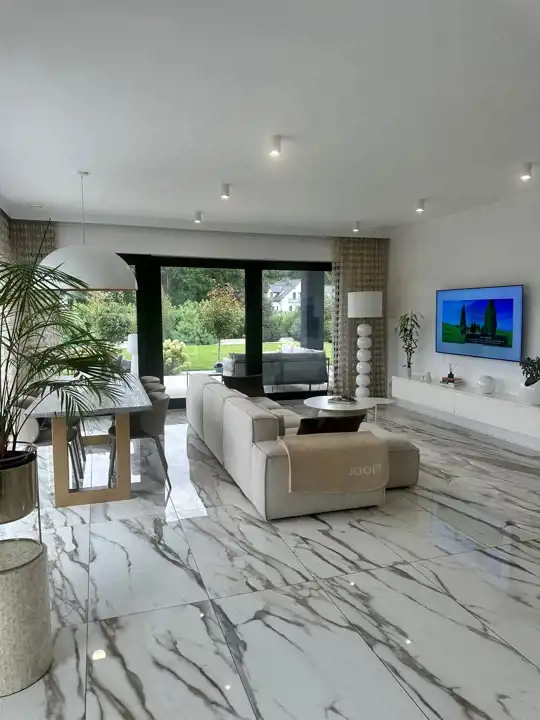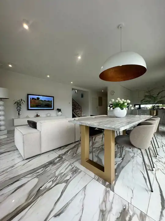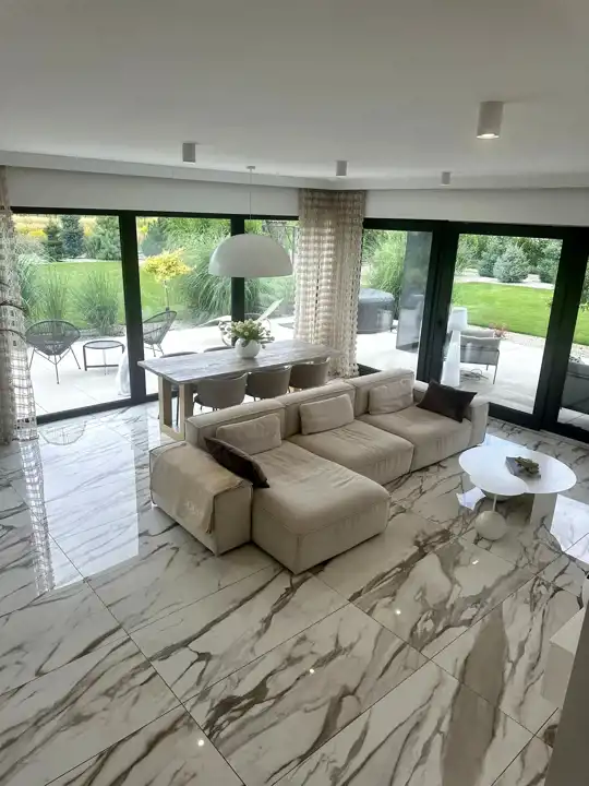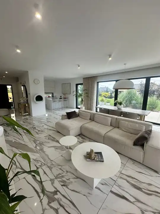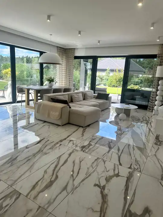- na podłogach jednolite panele i płytki - spieki kwarcowe;