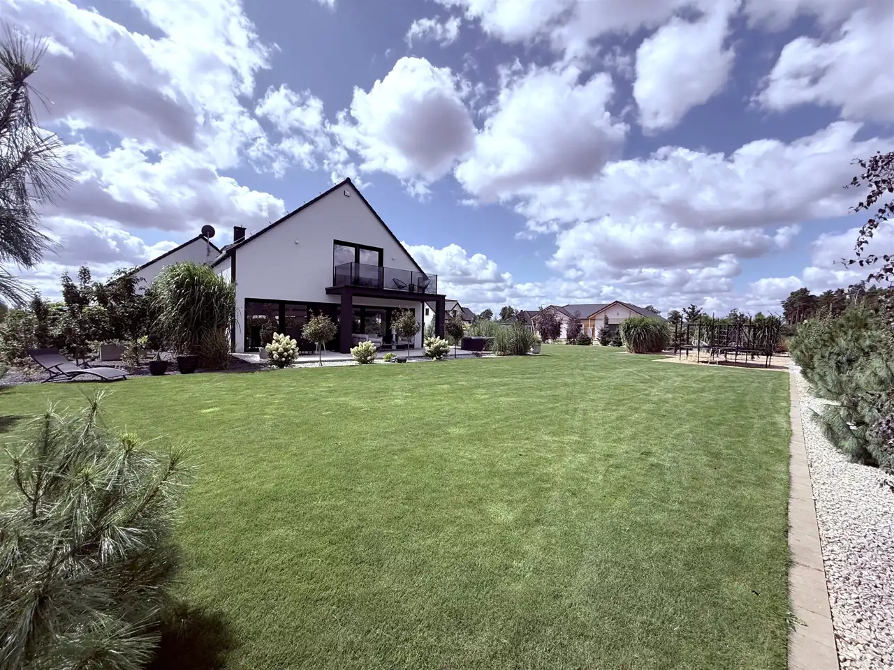 Wnętrze domu zachwyca gustownie dobranym wyposażeniem i dodatkami, na każdym kroku „czuć” ład i harmonię. Jednolite podłogi, świetnie zaaranżowana kuchnia, łazienki i pomieszczenia powodują, że mieszka się wygodnie i komfortowo. Dodatkowo duży taras, jacuzzi, otoczenie zieleni, mikroklimat sprawiają, że jest to prawdziwa strefa spokoju i relaksu. Dla dzieci jest wyznaczony teren do beztroskiej zabawy na świeżym powietrzu.