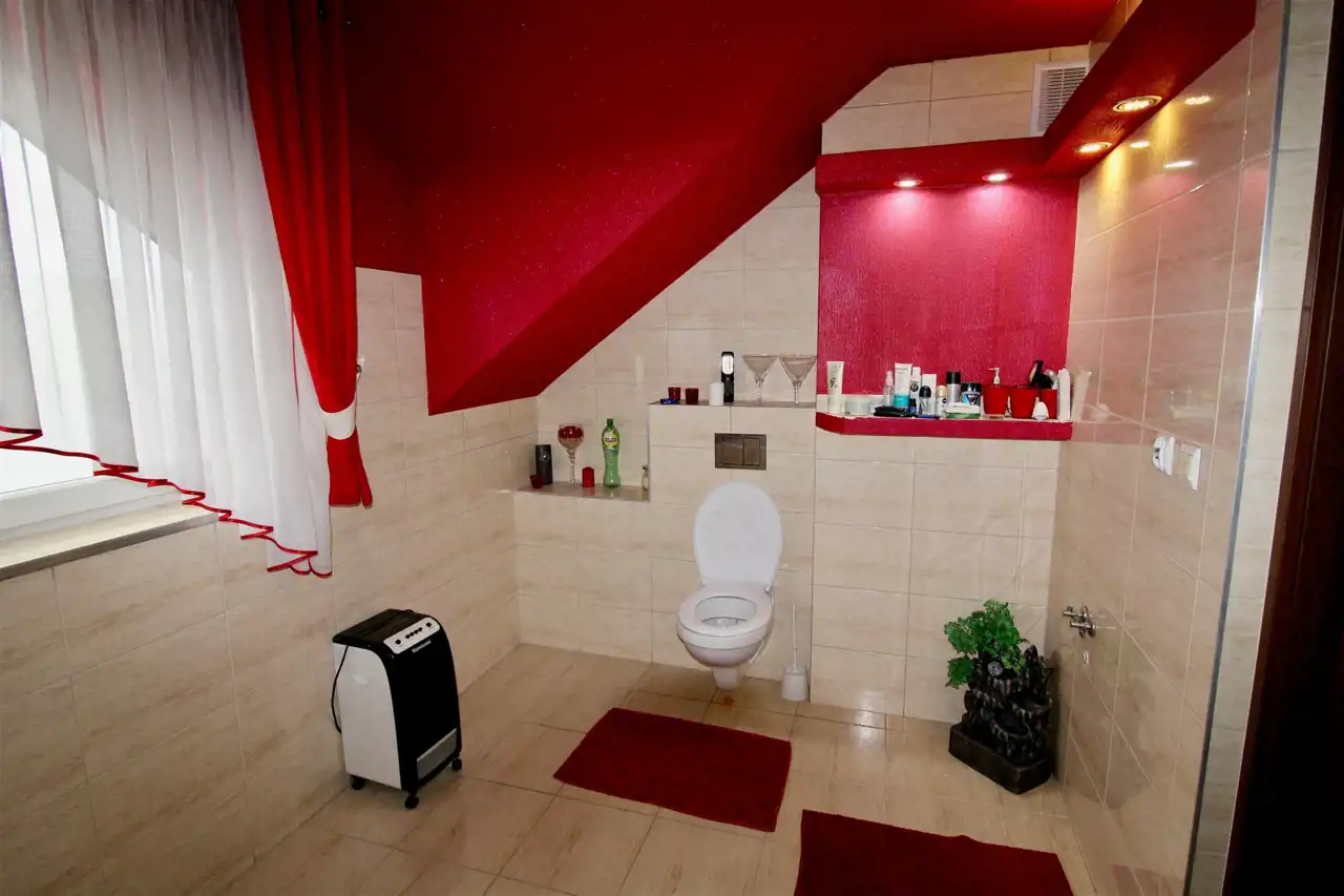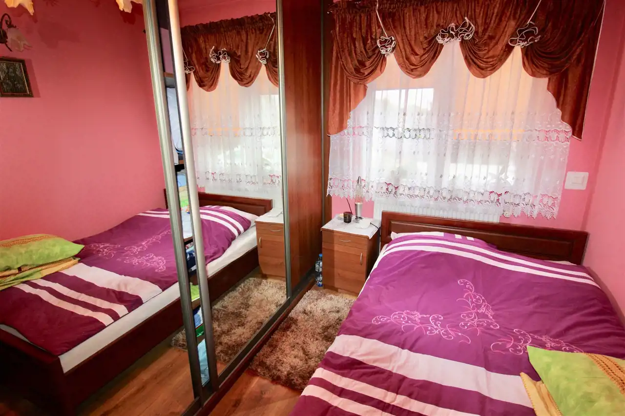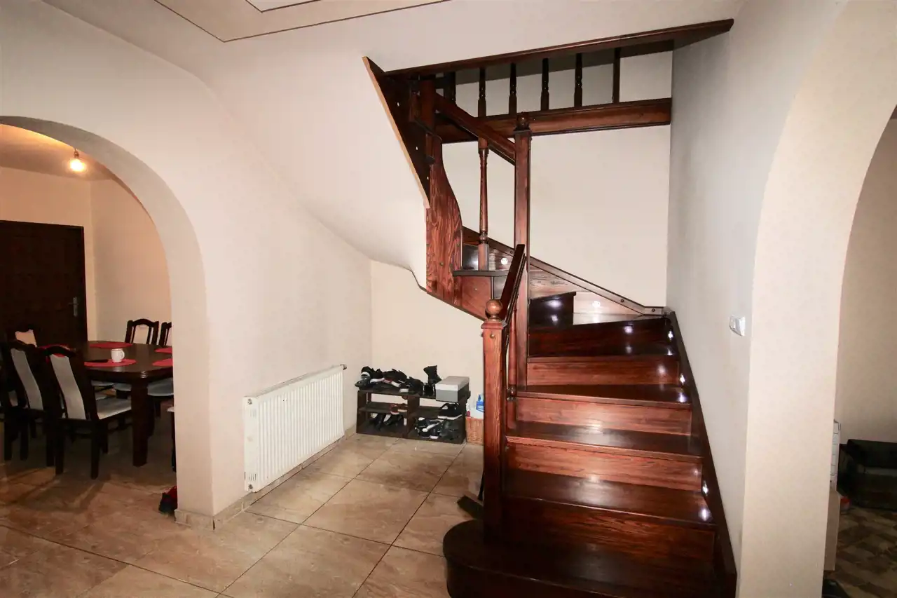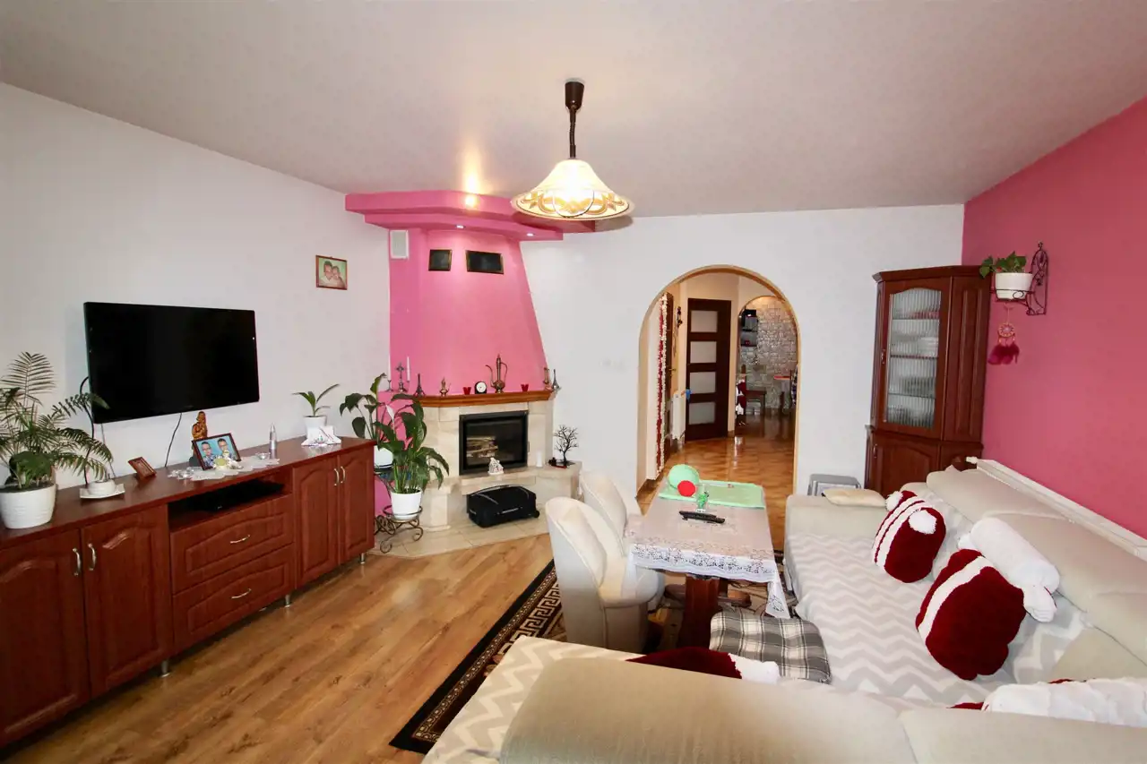 Dom wybudowany z suporeksu w 2012 roku jako dom 2-rodzinny z oddzielnymi wejściami oraz rozdzielonymi instalacjami, posiadający 6 pokoi, 2 salony, 2 kuchnie, jadalnię oraz 3 łazienki. Dom wyposażony w pompę ciepła, piec na ekogroszek, panele fotowoltaiczne 10 KW, media: prąd, woda, oczyszczalnia ekologiczna.