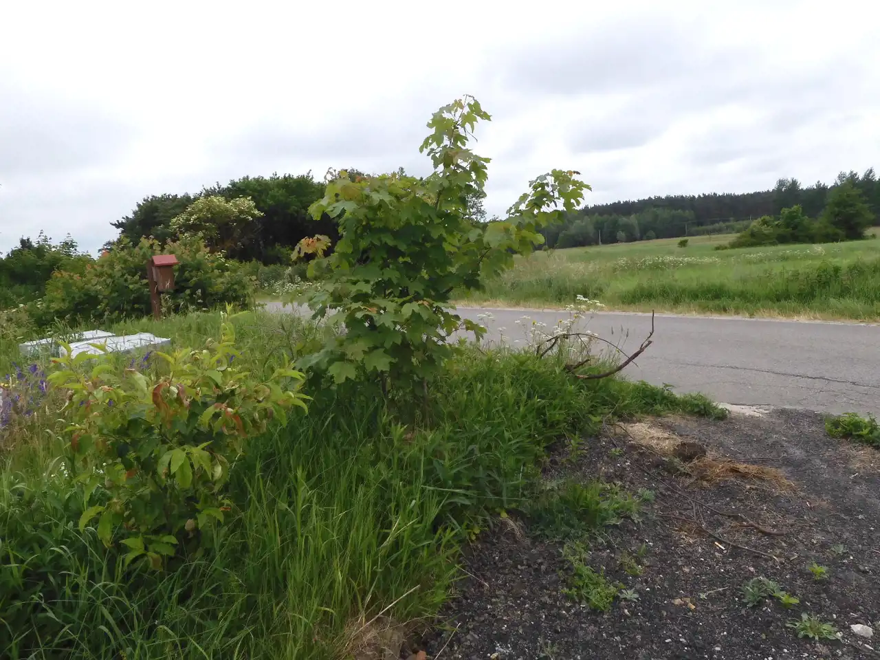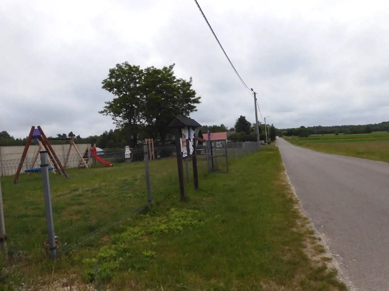 Vis-a-vis działki, po drugiej stronie ulicy nowa posesja, w pasie przydrożnym mała drewniana kapliczka (wiadomości do łatwiejszego zlokalizowania działki w terenie).