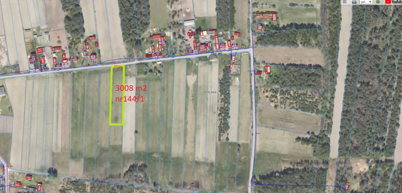 Działka nr ewidencyjny 144/1 obręb 0009 Kurzacze, kształt prostokąt o wymiarach około 25m x120m. Działka z dostępem do drogi asfaltowej 25m.