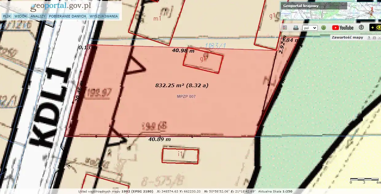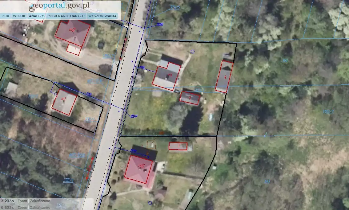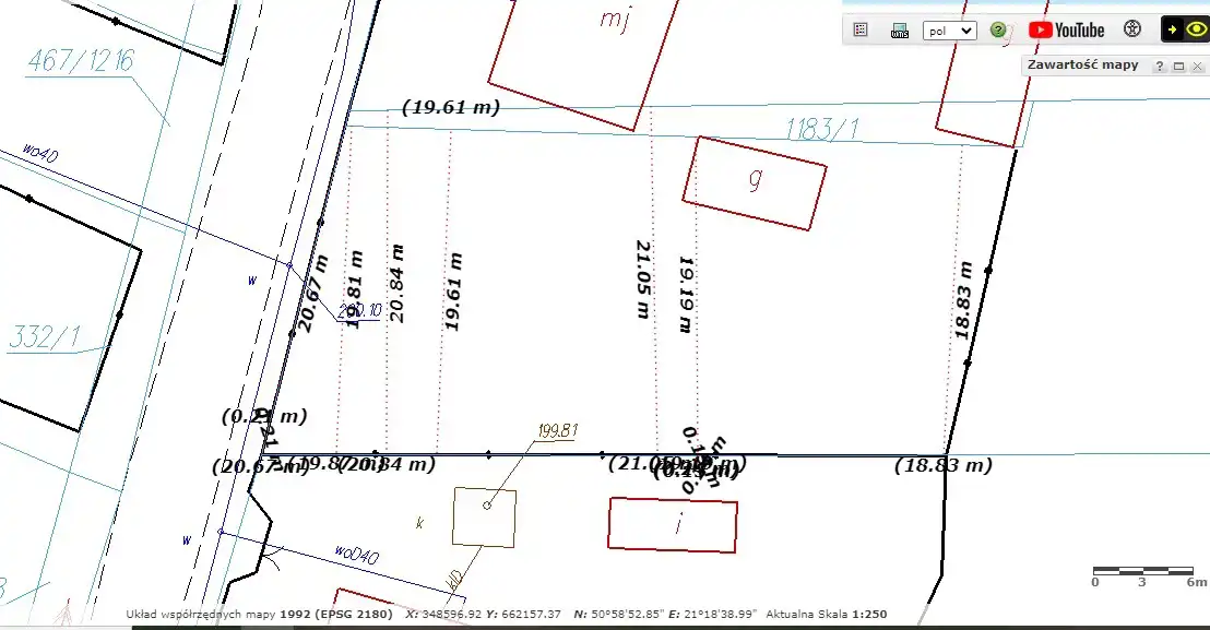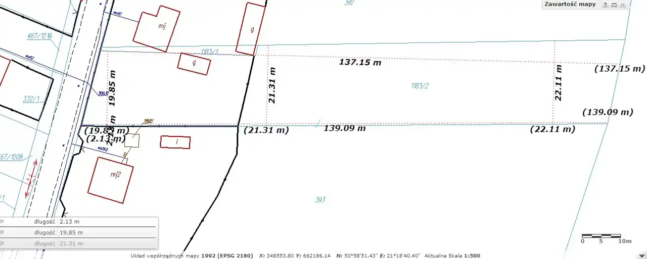 - Działka częściowo zagospodarowana, płaska, prostokąt