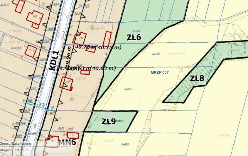 - MN – Single-family residential development, exclusively in the form of detached houses (approx. 800 m²); supplementary use – non-intrusive service buildings. Building and land use regulations: a) Maximum height: up to 11 m b) Maximum number of above-ground floors: 2 c) Roof form and pitch: gabled or multi-pitched roofs with an angle of 20° to 45°, flat roofs are also allowed d) Building intensity: maximum 0.6 - minimum 0.05 e) Maximum building coverage: 40% f) Minimum percentage of biologically active surface: 35%.