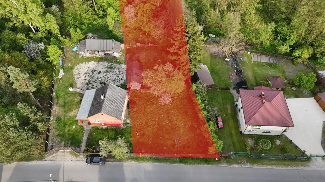 Przybliżone wymiary: 20 m (szerokość) x 138 m (długość). Działka płaska od frontu, w dalszej części pochyła, częściowo ogrodzona. Media: woda i prąd w ulicy przy działce. Dojazd drogą asfaltową.