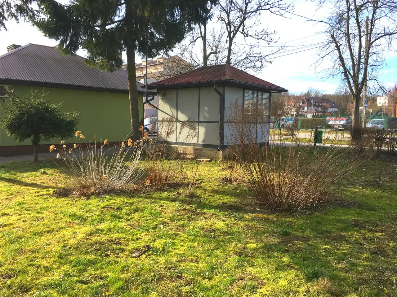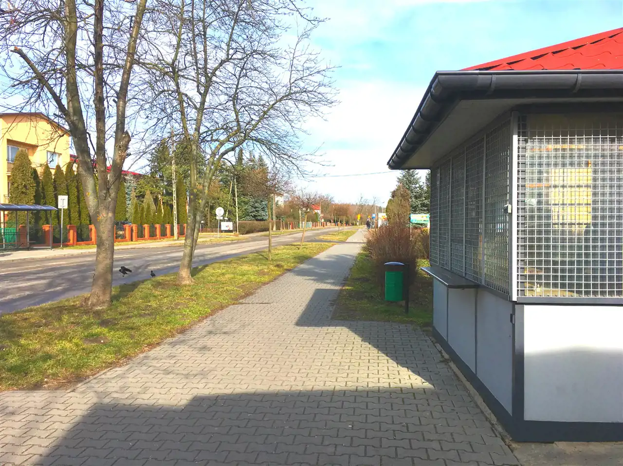 -Pawilon znajduje się w ruchliwym miejscu, które generuje duży ruch pieszych i pojazdów Obok kiosku chodnik wiedzie w kierunku kościoła oraz cmentarza. Kiosk metalowo-drewniany, przeszklony i okratowany, duże wnętrze z półkami, do dyspozycji także zaplecze o pow. ok.3 m2.