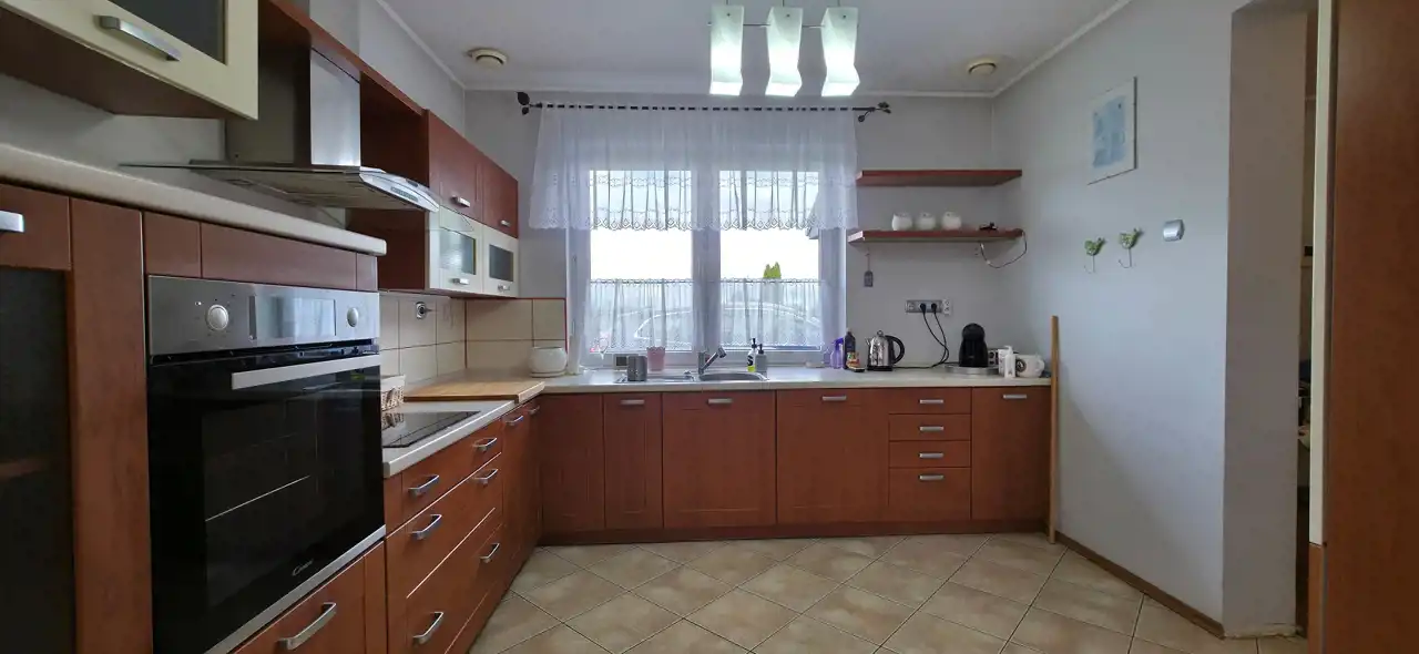 Sprzedam dom na dużej działce, przy ul. Powstania Styczniowego w Kutnie - rejon ulicy Piwnej. Powierzchnia całkowita domu 200 mkw. Salon, kuchnia, 3 sypialnie, 2 łazienki, korytarz, 2 garderoby, garaż i kotłownia. Duży taras od południa. Mur z pustaka suporeksowego i 12 cm. styropianu. Dach kryty blacho dachówką. Ogrzewanie gazowe z gazociągu miejskiego. Kanalizacja i woda miejska. Rekuperacja. Klimatyzacja. Stacja uzdatniania wody. Powierzchnia działki 3574 mkw. Na terenie domek ogrodowy, liczne drzewa owocowe i ozdobne oraz 1500 mkw. terenu do zagospodarowania. Spokojna okolica.