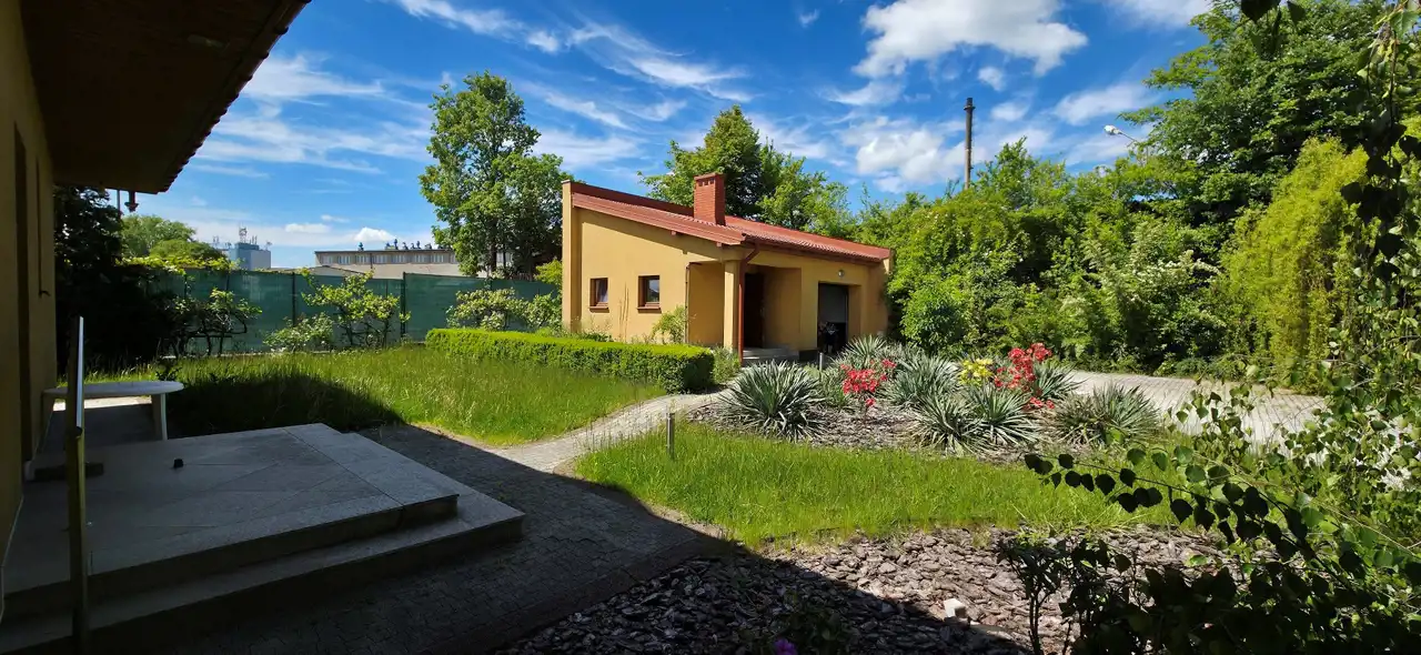 Ogrzewania gazowe z gazociągu miejskiego. Stacja uzdatniania wody użytkowej. Budynek gospodarczy o powierzchni 40 mkw. Budynek na narzędzia i śmieci. Woda miejska. Kanalizacja miejska. Prąd trójfazowy. Dwie bramy zjazdowe na posesję.