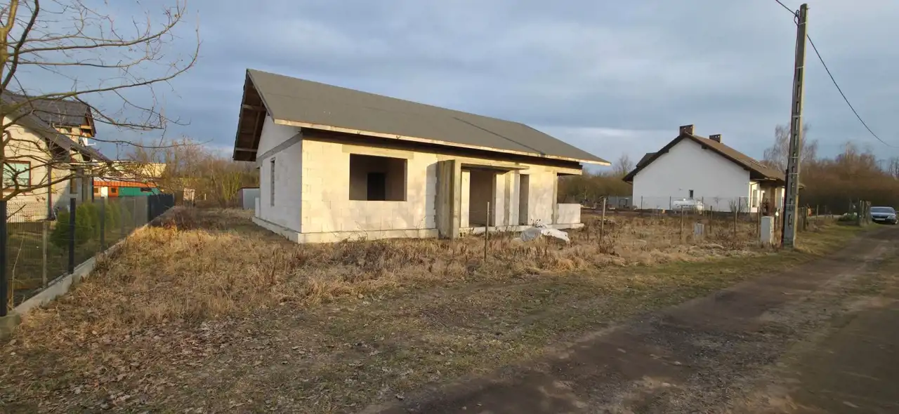 Sprzedam dom w stanie surowym otwartym przy ul. Mniszkówny w Kutnie. Rejon ul. Łęczyckiej, za ul. Konopnickiej. Powierzchnia domu 150 mkw. Salon, 3 sypialnie, łazienka z wc, łazienka gościnna, kuchnia, przedsionek, kotłownia i pomieszczenie gospodarcze. Stan surowy otwarty - brak okien, drzwi i instalacji. Powierzchnia działki 1420 mkw. Przyłącze wody wprowadzone do budynku. Prąd w ulicy obok działki. Kanalizacja i gazociąg miejski w ulicy 60 m. od działki. Wolnostojący garaż na dwa auta i pomieszczenie gospodarcze o łącznej powierzchni 55 mkw.