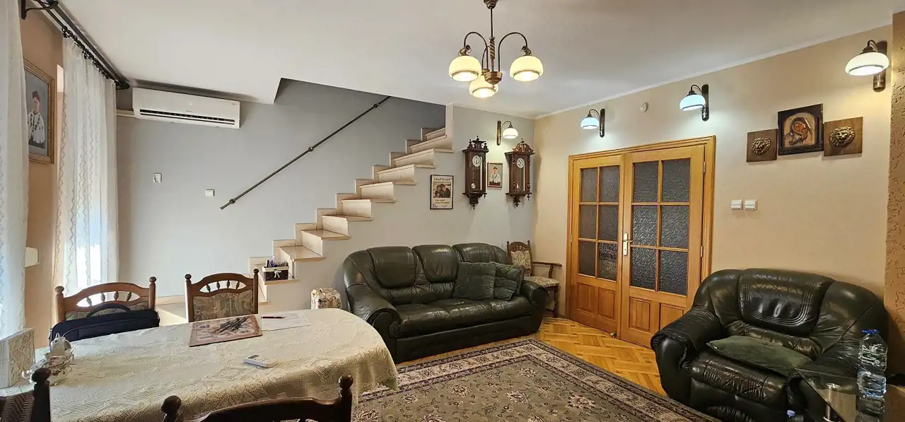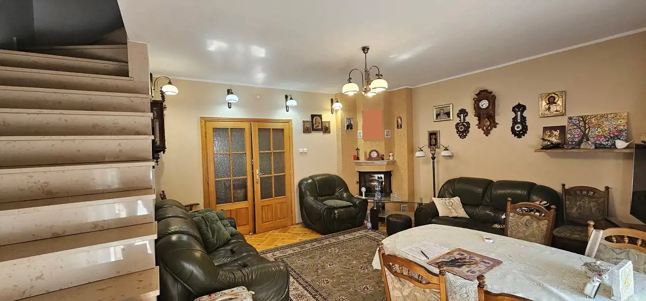 trzech kondygnacjach + strych. Suterena zrobiona na mieszkalną, wysoki parter, pierwsze piętro i zagospodarowany strych. Suterena może stanowić odrębne mieszkanie. Powierzchnia działki 132 mkw. salon, 3 sypialnie, 2 łazienki, wc, garaż. Ogrzewanie i ciepła woda miejskie. Kanalizacja miejska. Klimatyzacja. Światłowód. Dach po remoncie. Bardzo dobra izolacja budynku. Umeblowanie do uzgodnienia.