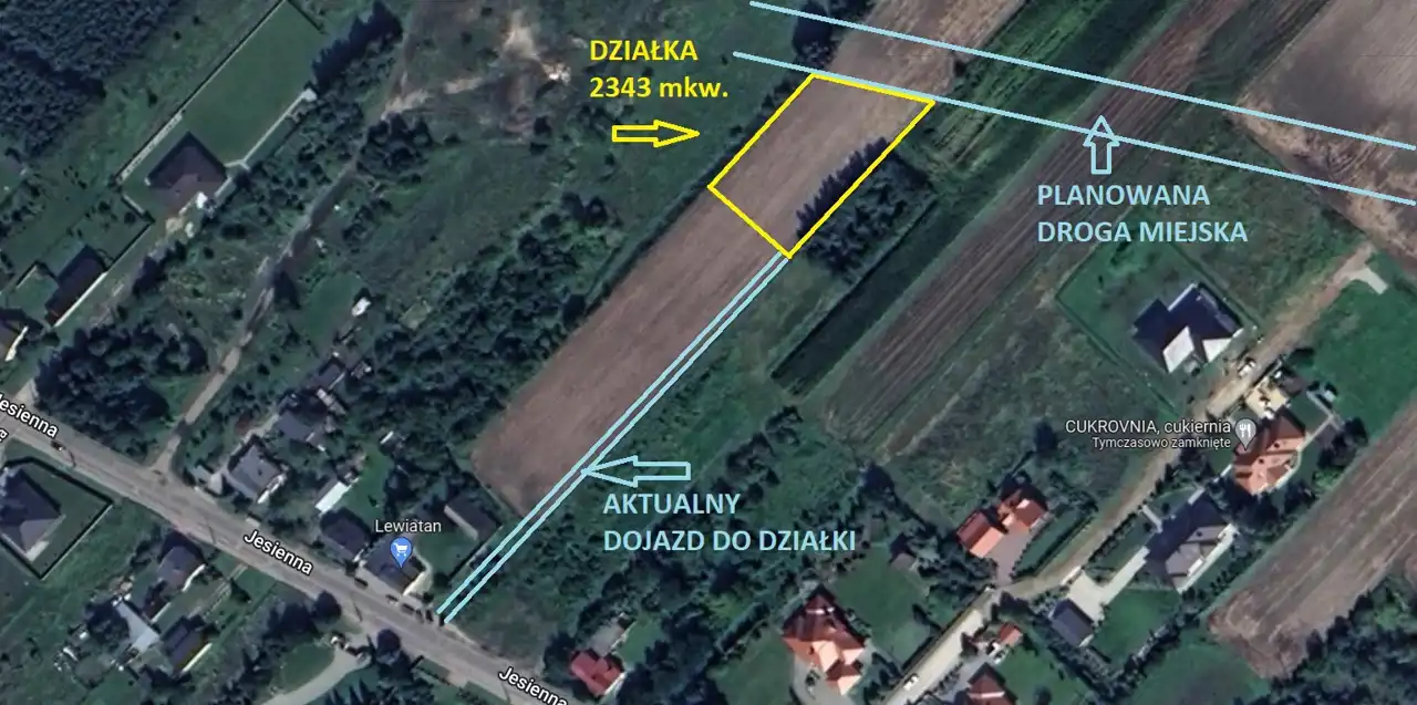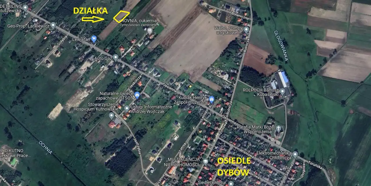 Sprzedam działkę budowlaną o powierzchni 2343 mkw., przy ul. Jesiennej w Kutnie. Świetna lokalizacja. Działka położona 160 m. od ul. Jesiennej. Plan miejscowy pod zabudowę mieszkaniową jednorodzinną. Tymczasowy dojazd od ul. Jesiennej. W planach droga miejska przy granicy działki. Bardzo spokojna okolica. Prąd, kanalizacja i woda w ul. Jesiennej. Dobry dojazd do centrum miasta. W pobliżu sklep, las, jeziorko w Grodnie.