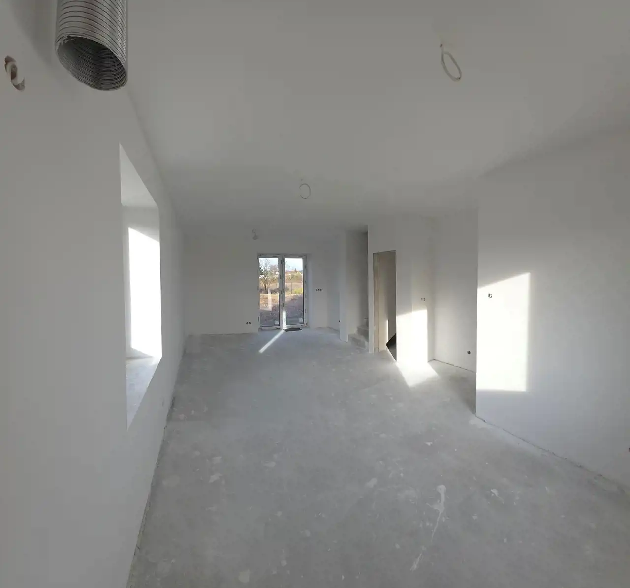Sprzedam dom do wykończenia w Gołębiewie Nowym pod Kutnem - przy drodze na Głogowiec. Powierzchnia działki 660 mkw. Powierzchnia całkowita domu 82 mkw. Parter: salon z aneksem kuchennym, wiatrołap, łazienka, pomieszczenie gospodarcze, kotłownia. Piętro: 2 sypialnie, łazienka, korytarz. Możliwość zrobienia 3 sypialni. Pustak suporeks ocieplony styropianem 20 cm. Dach kryty blacho dachówką, ocieplony pianą 25 cm. Strop betonowy. Sufit piętra dodatkowo ocieplony wełną mineralną. Okna 3 szybowe PCV. Media gminne.