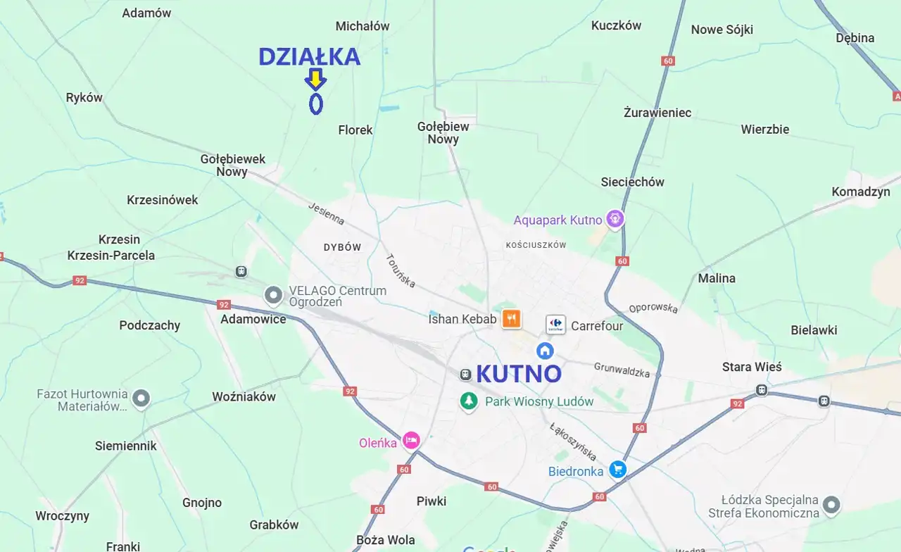 Sprzedam działkę budowlaną w Gołębiewku Nowym pod Kutnem. Powierzchnia ok. 12600 mkw. (1,26 ha). Możliwość podziału na mniejsze działki budowlane. Plan miejscowy pod zabudowę mieszkaniową jednorodzinną. Brak zabudowy. Woda, prąd, kanalizacja i światłowód w ulicy. Bardzo spokojna okolica. Pola, lasy i łąki. W pobliżu szkoła, przystanek autobusowy i sklep. Dobry dojazd do centrum Kutna.