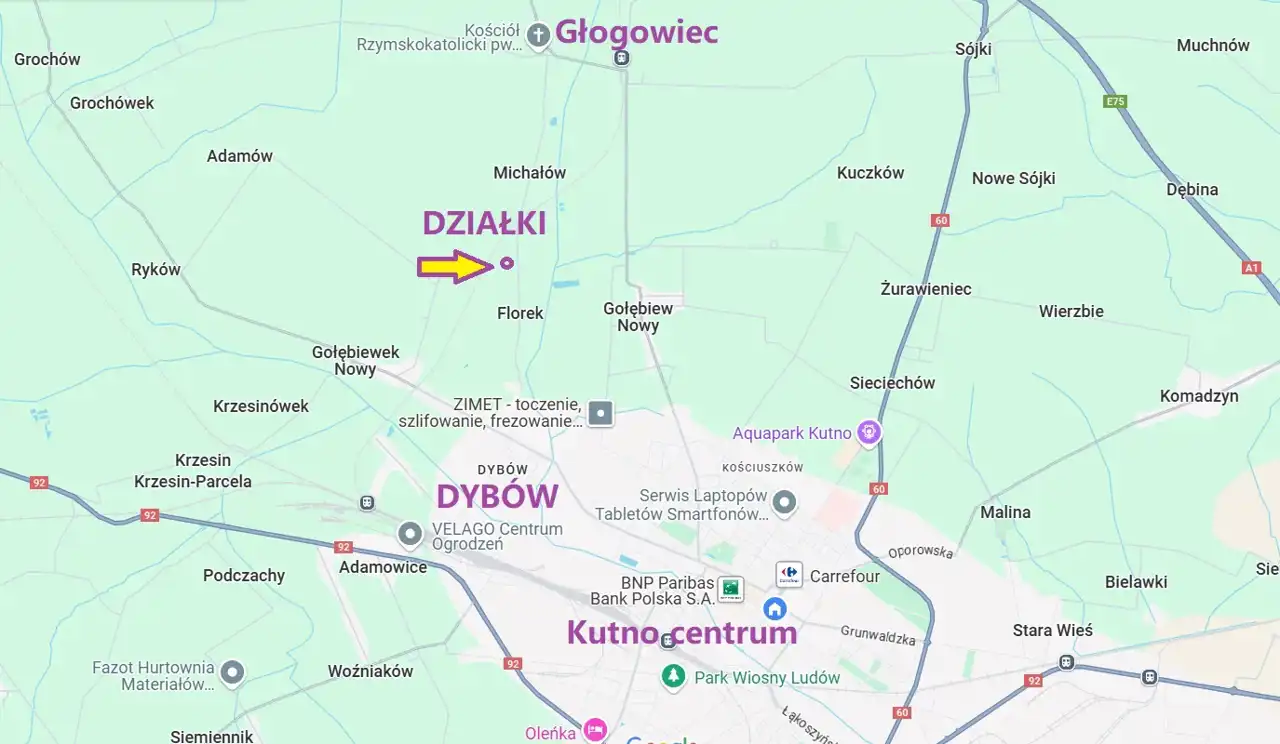 Sprzedam działkę budowlaną na Florku pod Kutnem. Zachodnia strona miasta. Powierzchnia działki 1211 mkw. Możliwość zakupu działki obok, o powierzchni 1213 mkw. Plan zagospodarowania przestrzennego. Przeznaczenie działki pod zabudowę mieszkaniową jednorodzinną i działalność gospodarczą. W cenie udział w prywatnej drodze dojazdowej. G Prąd, kanalizacja i woda w ulicy obok działki. Bardzo spokojna okolica. Dobry dojazd do centrum miasta. W pobliżu las w Głogowcu i jezioro w Grodnie.
