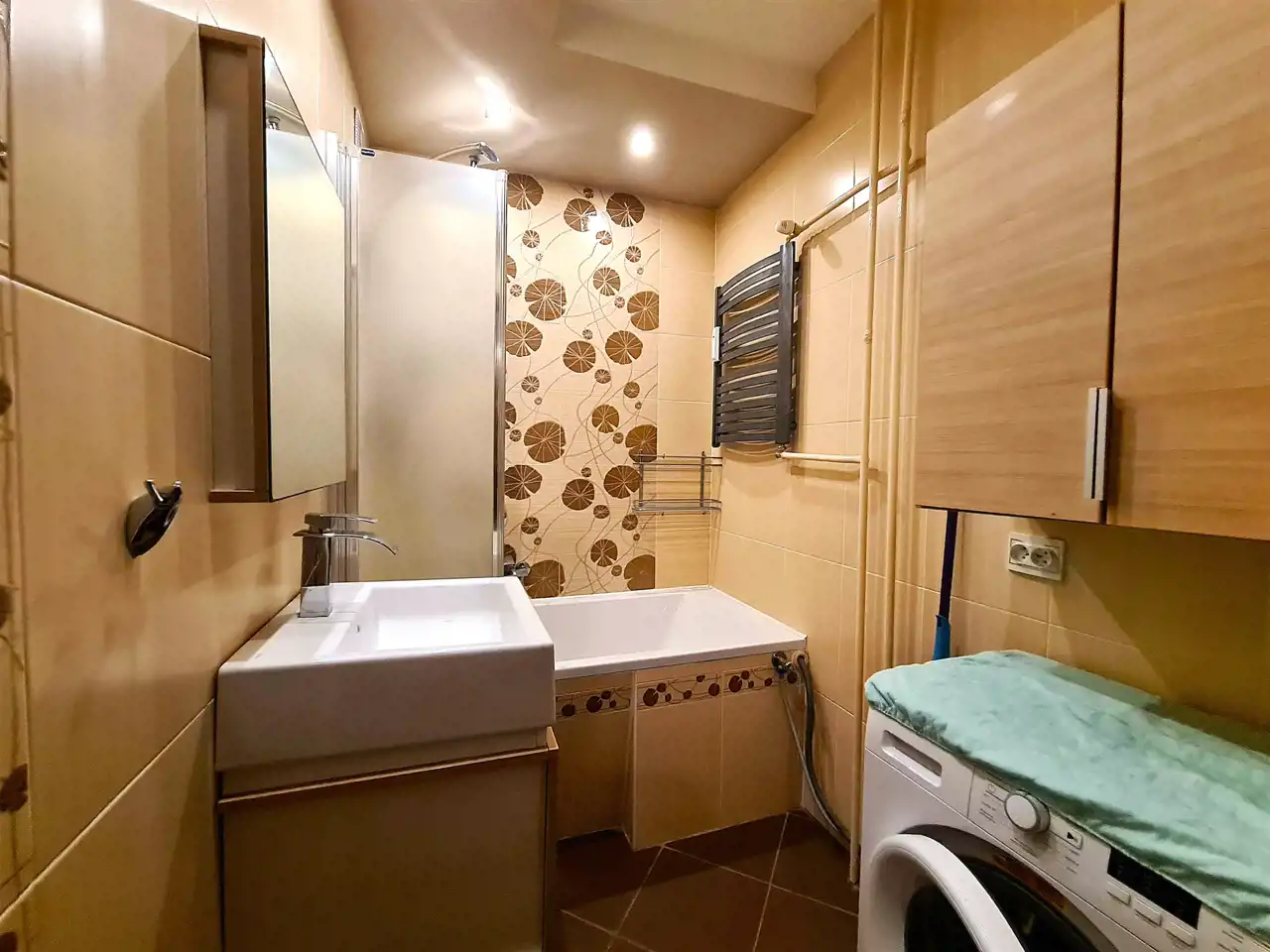 Na wprost wejścia , na końcu przedpokoju znajdują się : samodzielne WC oraz łazienka w glazurze i terakocie.