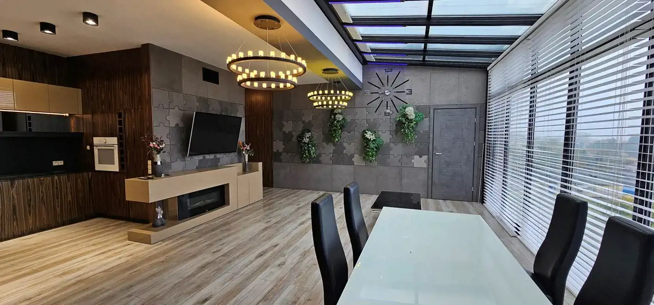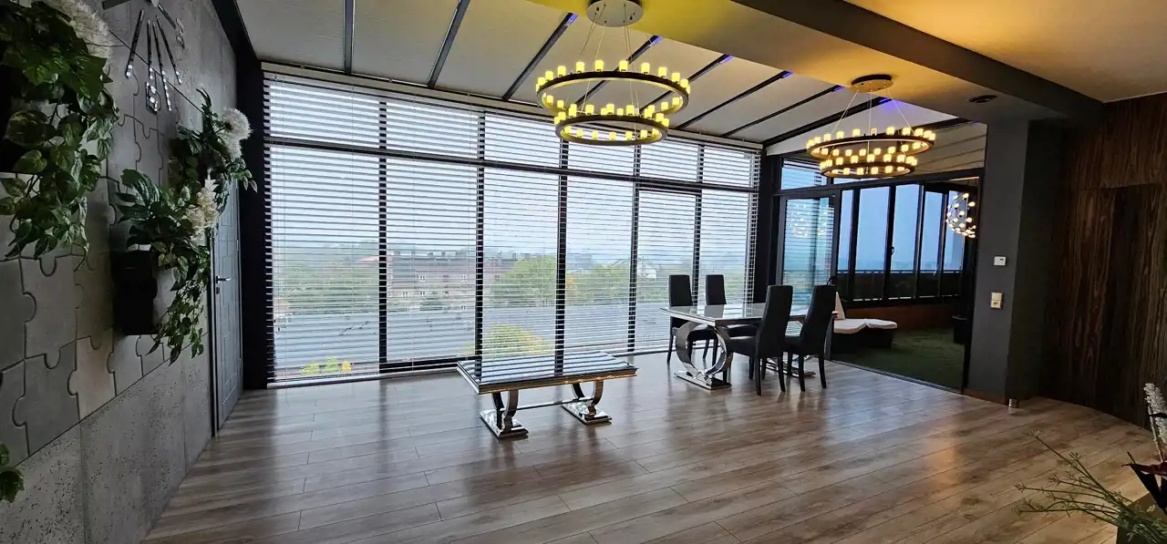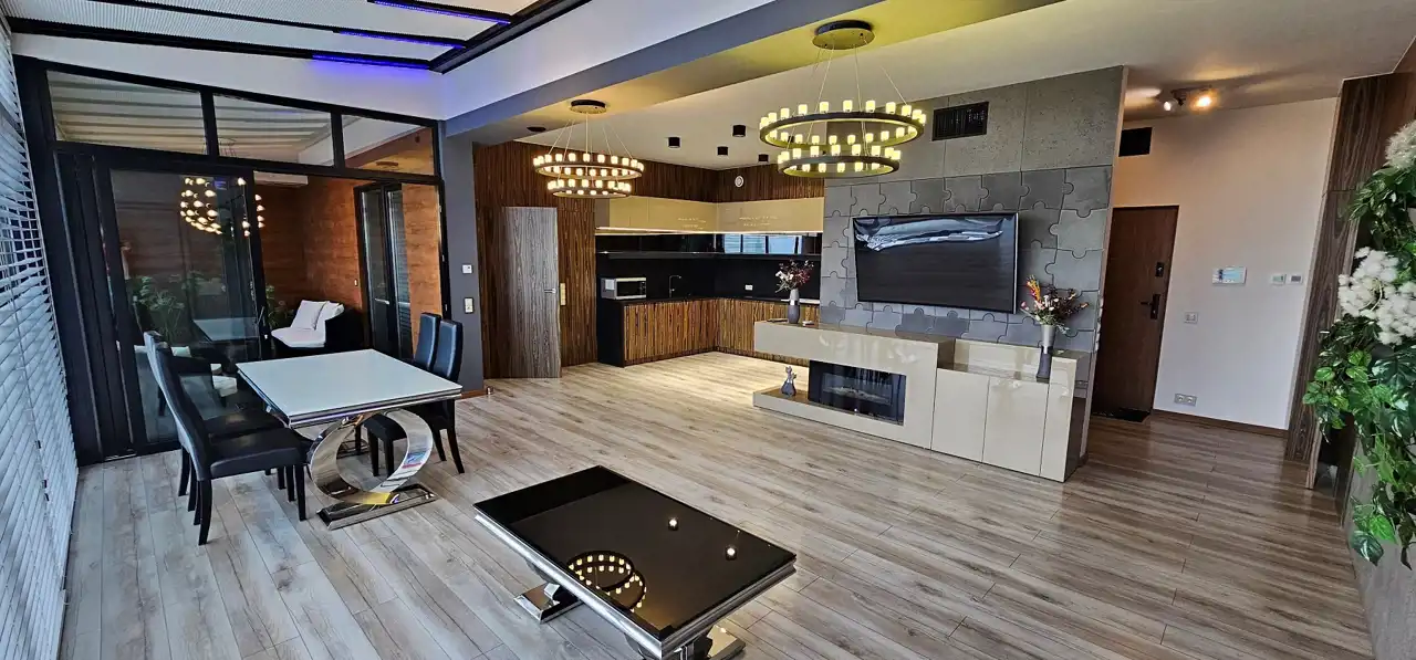 Sprzedam luksusowy apartament w budynku przy ul. Sobieskiego 18 w Kutnie. 94 mkw., IV piętro, salon z aneksem kuchennym, 2 sypialnie, łazienka, garderoba, zamknięta przeszklona loggia - ogród zimowy, miejsce w garażu podziemnym i miejsce parkingowe obok budynku. Lokal umeblowany i wyposażony. Klimatyzacja części mieszkalnej i ogrodu zimowego. Ogrzewanie podłogowe. Wentylacja mechaniczna. Kominek elektryczny. Światłowód. Okna na południe z widokiem na panoramę miasta, zabezpieczone przed promieniowaniem słonecznym. W salonie częściowo przeszklony i zamykany roletami dach. Rolety we wszystkich oknach. Budynek wyposażony w windę. W pobliżu sklepy, park, restauracje, tereny sportowe i centrum miasta.
