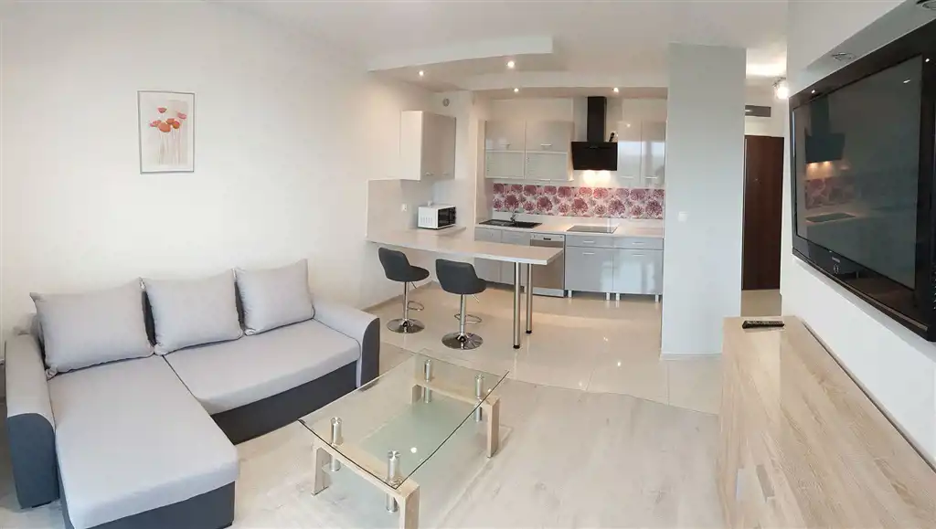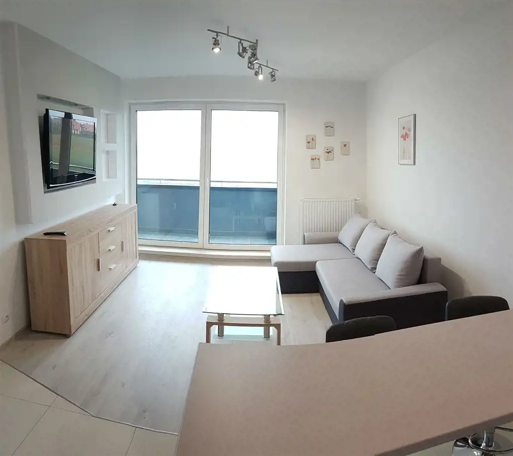 Wynajmę bardzo ładne mieszkanie w Kutnie przy ul. Kasztanowej. Nowy budynek. II piętro, 40 mkw, salon z aneksem kuchennym, sypialnia, łazienka z wc., przedpokój, duży balkon, piwnica i miejsce parkingowe. Umeblowanie i wyposażenie w wysokim standardzie. Telewizor, pralka, lodówka z zamrażarką, kuchnia z płytą elektryczną, zmywarka, mikrofalówka, czajnik elektryczny. Telewizja kablowa i internet na koszt najemcy - pakiet do wyboru. Miejsce parkingowe przy budynku na terenie zamkniętym z bramą na pilota. 15 minut pieszo do centrum miasta. Dobry dojazd do strefy przemysłowej. W pobliżu sklepy, apteki, restauracja, przychodnia lekarska, poczta, aquapark i galeria handlowa. Przy ulicy ścieżka rowerowa. Do lasu 2,5 km.