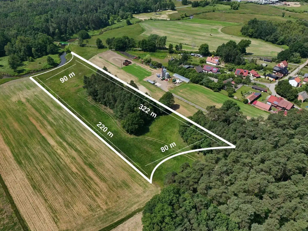 - Wymiary: ok. 322m x 80m x 220m x 90m