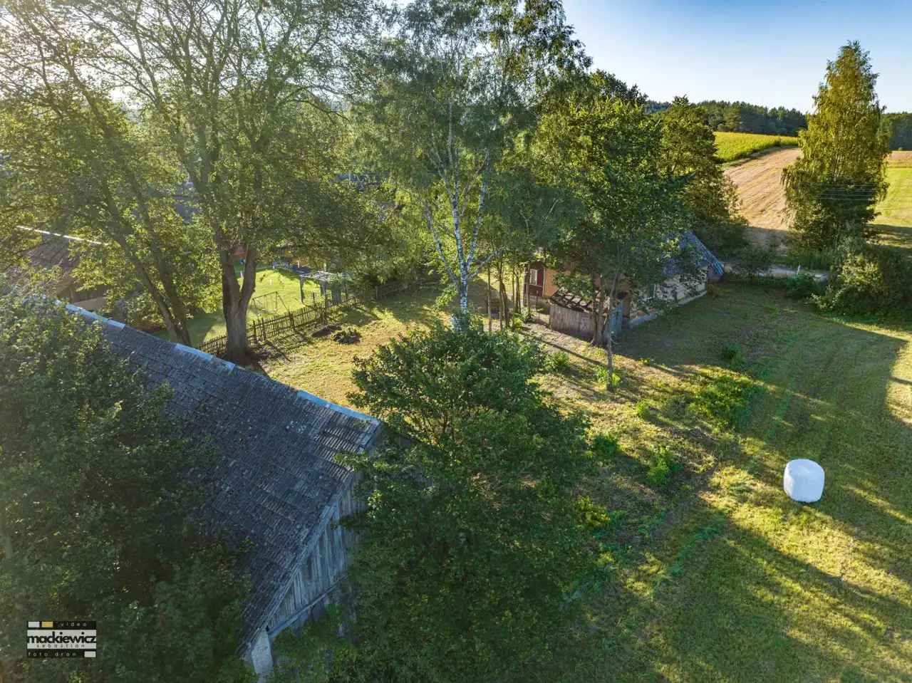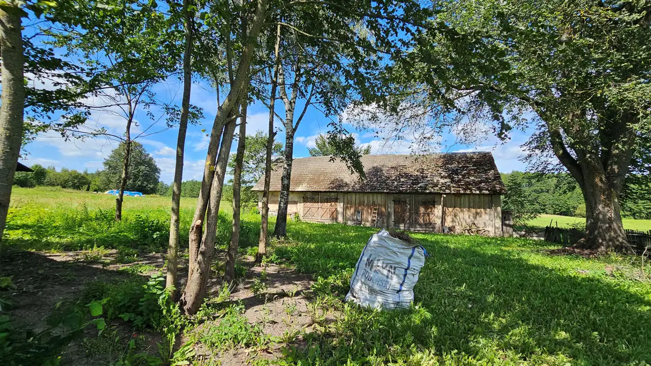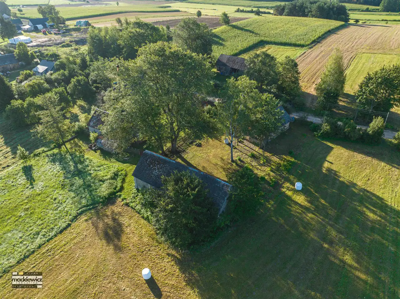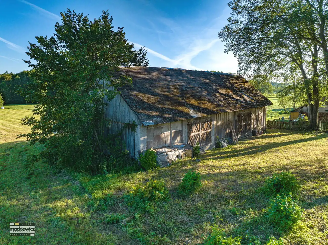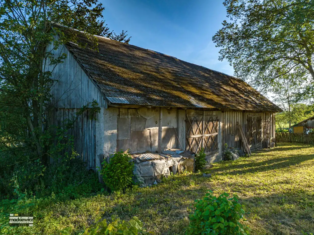 Działka o powierzchni 5438 m² ma kształt prostokąta (szerokość ok. 26 m, długość ok. 207 m). Na jej terenie znajduje się dom mieszkalny z wymienionymi oknami PCV oraz solidna stodoła w dobrym stanie, pokryta dachówką cementową. Dodatkowym atutem jest własna studnia głębinowa.