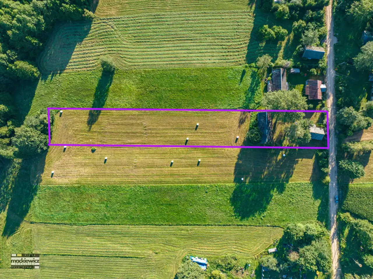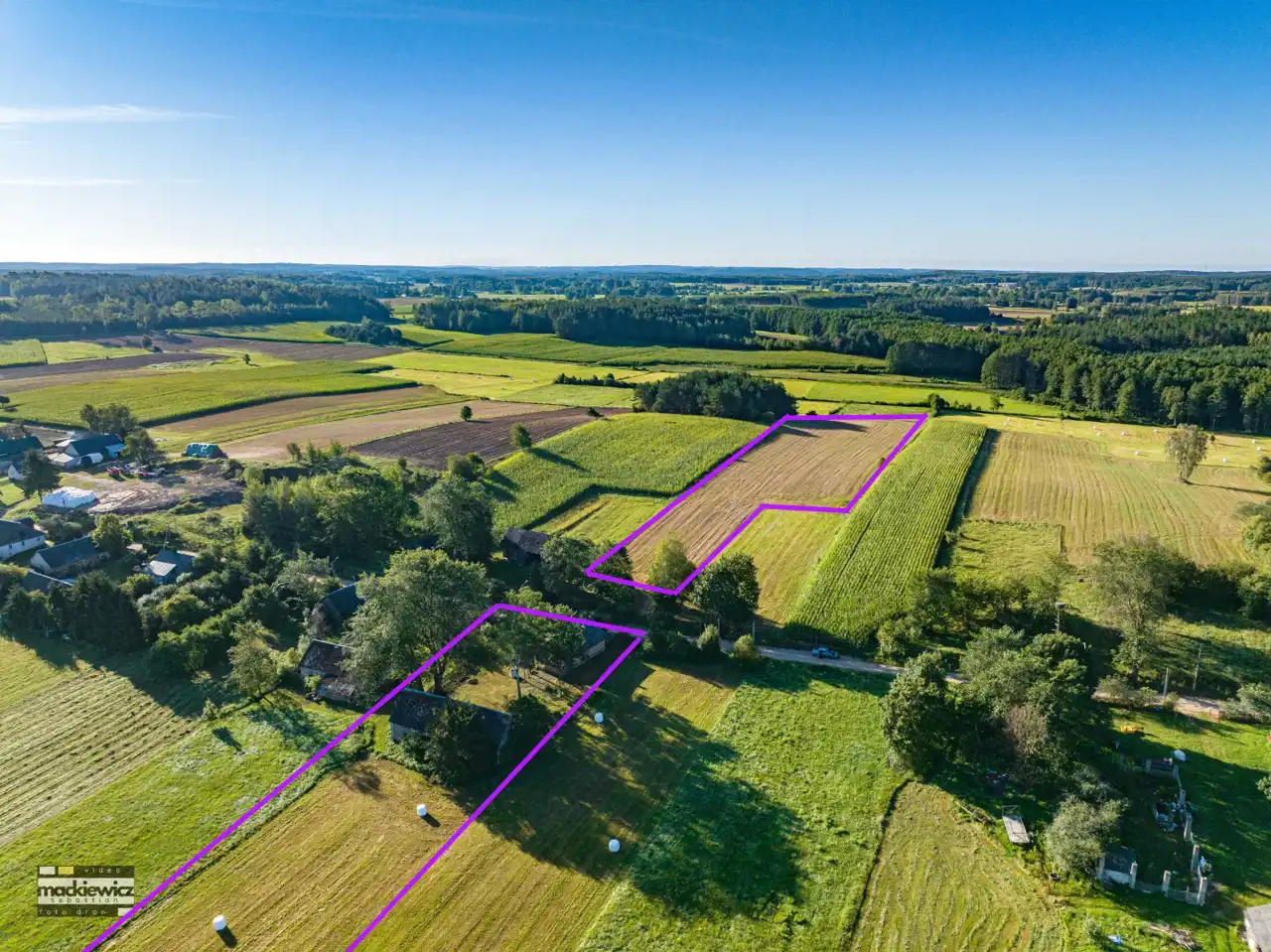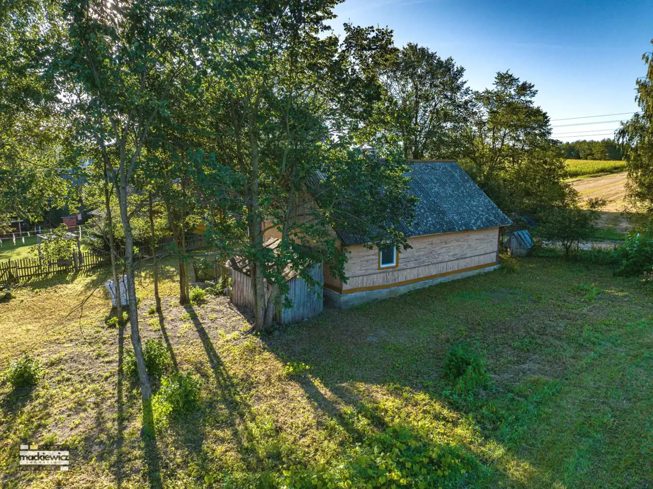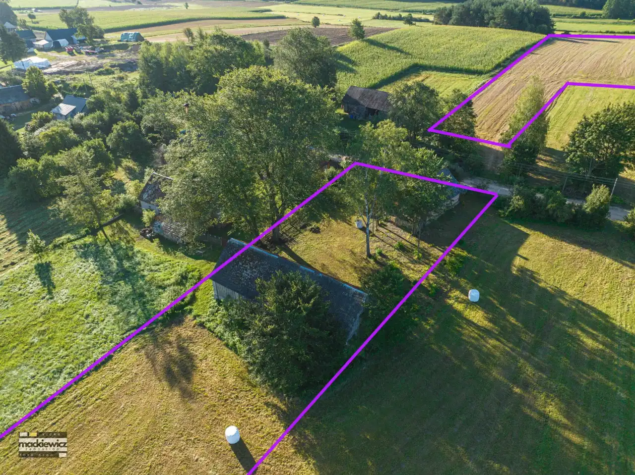 Działka o powierzchni 5438 m² ma kształt prostokąta (szerokość ok. 26 m, długość ok. 207 m). Na jej terenie znajduje się dom mieszkalny z wymienionymi oknami PCV oraz solidna stodoła w dobrym stanie, pokryta dachówką cementową. Dodatkowym atutem jest własna studnia głębinowa.