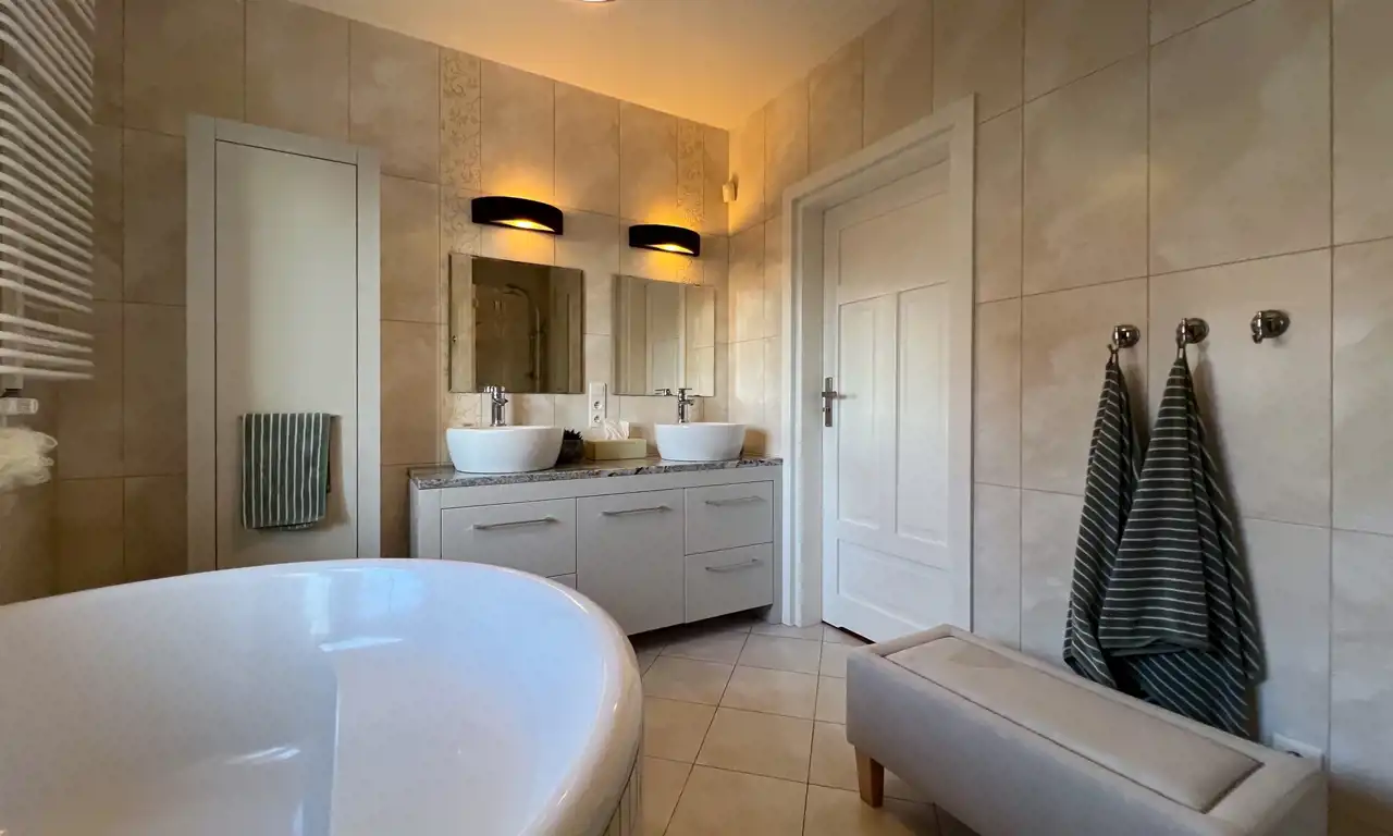 Ogromnym atutem tej nieruchomości jest wykończenie wnętrz, zaprojektowane w każdym detalu przez architektkę. Przekraczając próg tego domu, od razu można poczuć ciepło, przytulność i niezwykły klimat, który sprawia, że nie chce się stąd wychodzić. Mnogość ciekawych rozwiązań i materiałów najwyższej jakości z pewnością zadowoli nawet najbardziej wymagających.