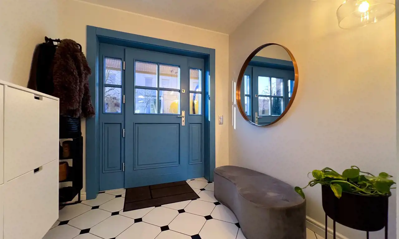 - Czytnik linii papilarnych przy wejściu od ogrodu, dzięki któremu możesz swobodnie korzystać z ogrodu lub wejść do domu gdy np. zapomnisz kluczy