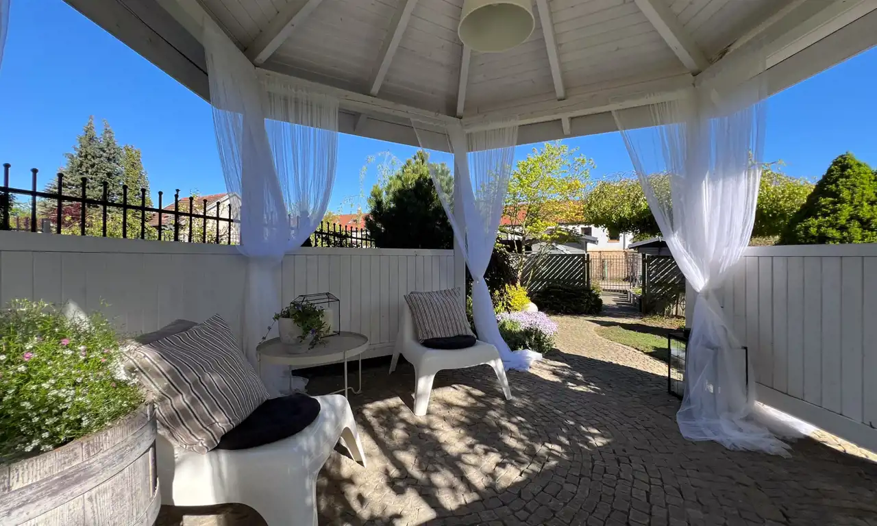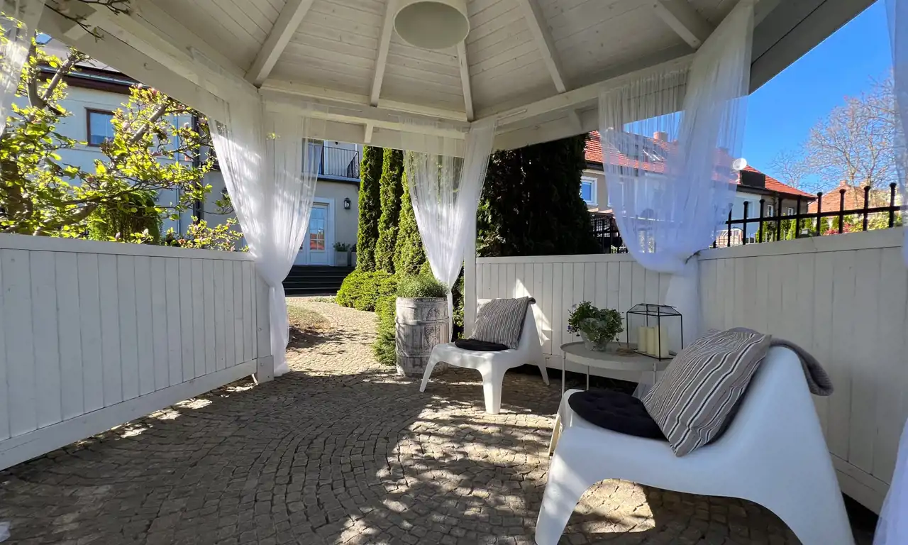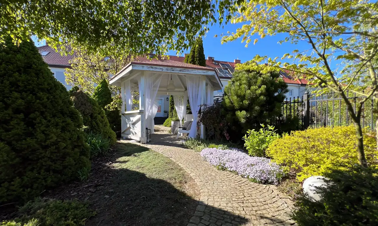 Dom usytuowany jest na 348 m² ogrodzonej działki, która została zaprojektowana przez profesjonalne biuro architektoniczne, oferując wyjątkowe miejsce do odpoczynku i rekreacji. Starannie dobrane nasadzenia i piękne krzewy nadają temu miejscu wyjątkowy klimat. W centralnej części działki znajduje się duża, drewniana altana, idealna do organizacji rodzinnych spotkań i wieczornych chwil przy lampce wina. W najbardziej oddalonej części znajduję się miejsce dla osób ceniących ekologię i zdrowe jedzenie. Zaplanowano tutaj niewielką szklarnię oraz drewniane pojemniki pod uprawę warzyw, co pozwala na własne, świeże plony przez cały sezon.
