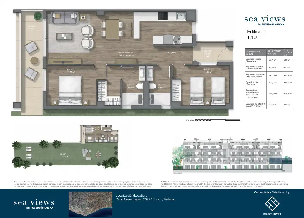 Puerto Narixa wyróżnia się przemyślaną architekturą i nowoczesnym designem, który harmonijnie współgra z otoczeniem. Każdy apartament został zaprojektowany tak, aby maksymalnie wykorzystać naturalne światło i otworzyć wnętrza na otaczające krajobrazy. Przestronne, zadaszone tarasy to idealne miejsce na poranną kawę, popołudniowy relaks czy kolację z widokiem na morze.