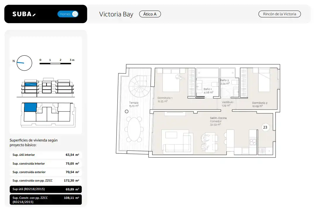 Victoria Bay oferuje wokół siebie szeroką gamę usług. Znajduje się ona na plaży Benagalbón w Rincón de la Victoria.