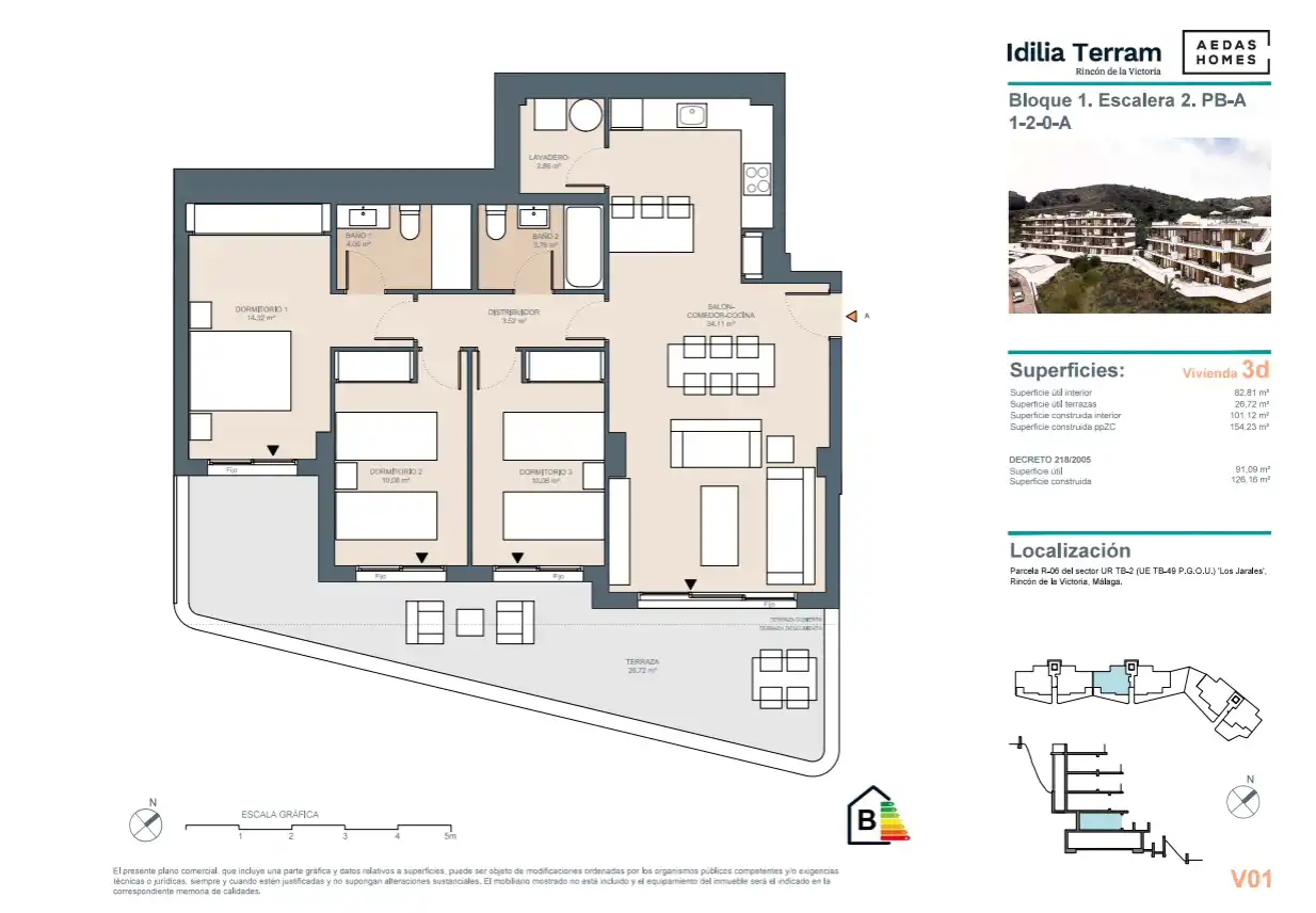 Inwestycja położona jest zaledwie kilka minut od plaży i wszystkich udogodnień oferowanych przez Rincón de la Victoria: sklepów, restauracji, szkół, opieki zdrowotnej i wiele więcej.