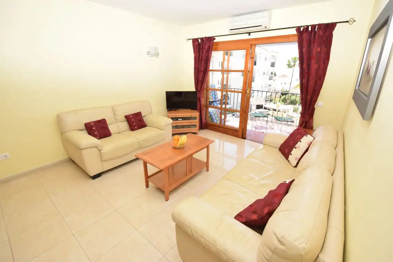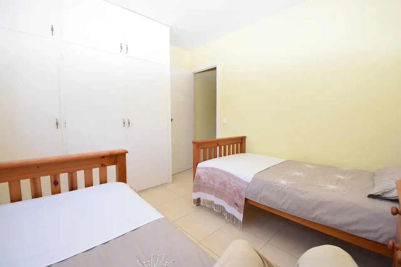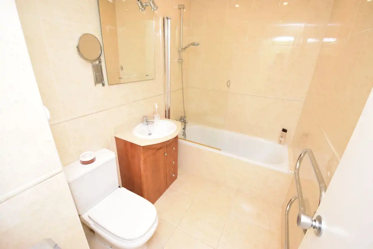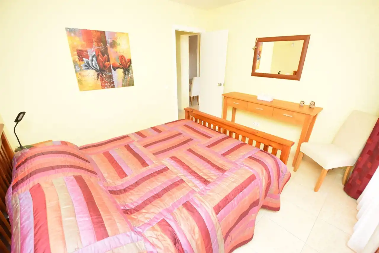 Obok sypialni głównej znajduje się łazienka, a sypialnia gościnna znajduje się z drugiej strony mieszkania. Obie sypialnie mają wbudowane szafy, a obok wejścia do apartamentu znajduje się przynależne osobne pomieszczenie gospodarcze. Wokół budynku znajduje się wspólny parking, a ze względu na bliskość pola golfowego El Chaparral jest to bardzo spokojna okolica.