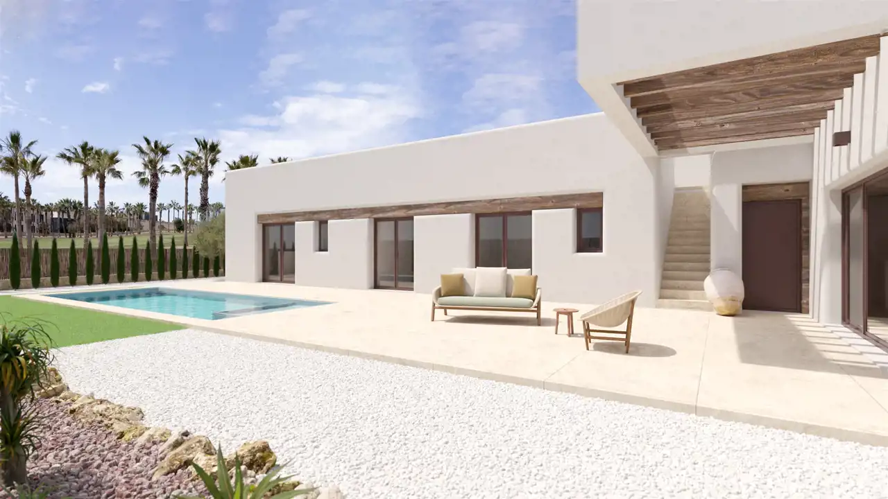 Willa wolnostojąca zwrócona w stronę pól golfowych.