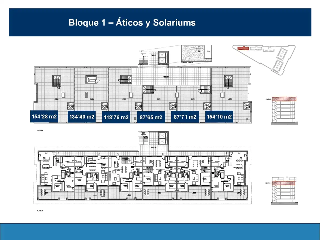 W większości apartamenty składają się z 2 sypialni i 2 łazienek, natomiast apartamenty na ostatnich piętrach, typu penthouse składają się z 3 sypialni i 2 łazienek, a ponadto posiadają prywatne tarasy na dachu budynku.