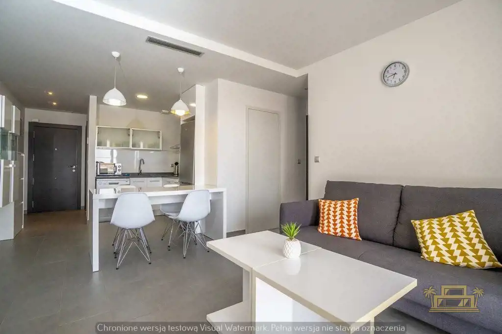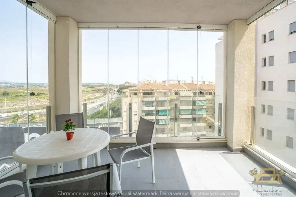 Nowoczesny apartament w kompleksie mieszkaniowym Aqua Nature położonym w La Mata, Torrevieja. Doskonała lokalizacja tylko 100m od plaży. Mieszkanie o powierzchni całkowitej 76m2 składa się z 2 sypialni, 2 łazienek, otwartej kuchni, salonu z jadalnią oraz tarasu z widokiem na morze. Lokal na 6 pietrze, w budynku jest winda.
